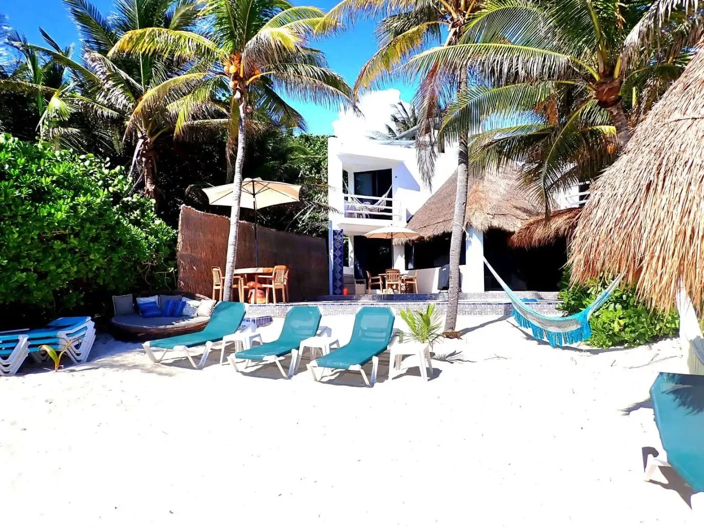 This beachfront villa is situated on Akumal Bay in the Riviera Maya.