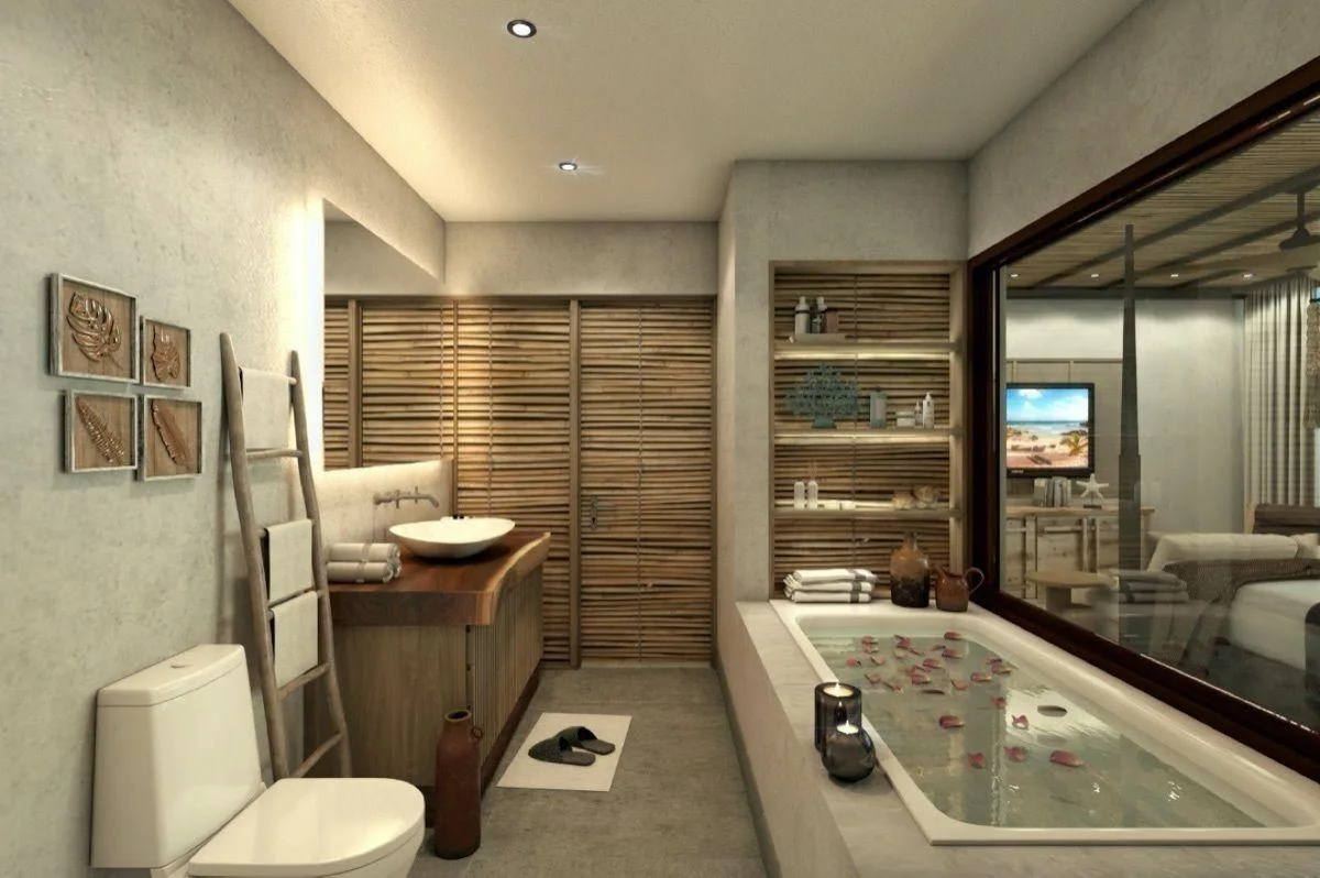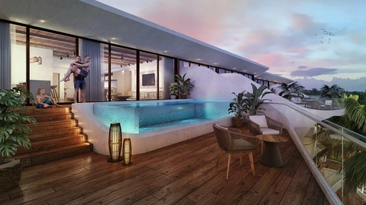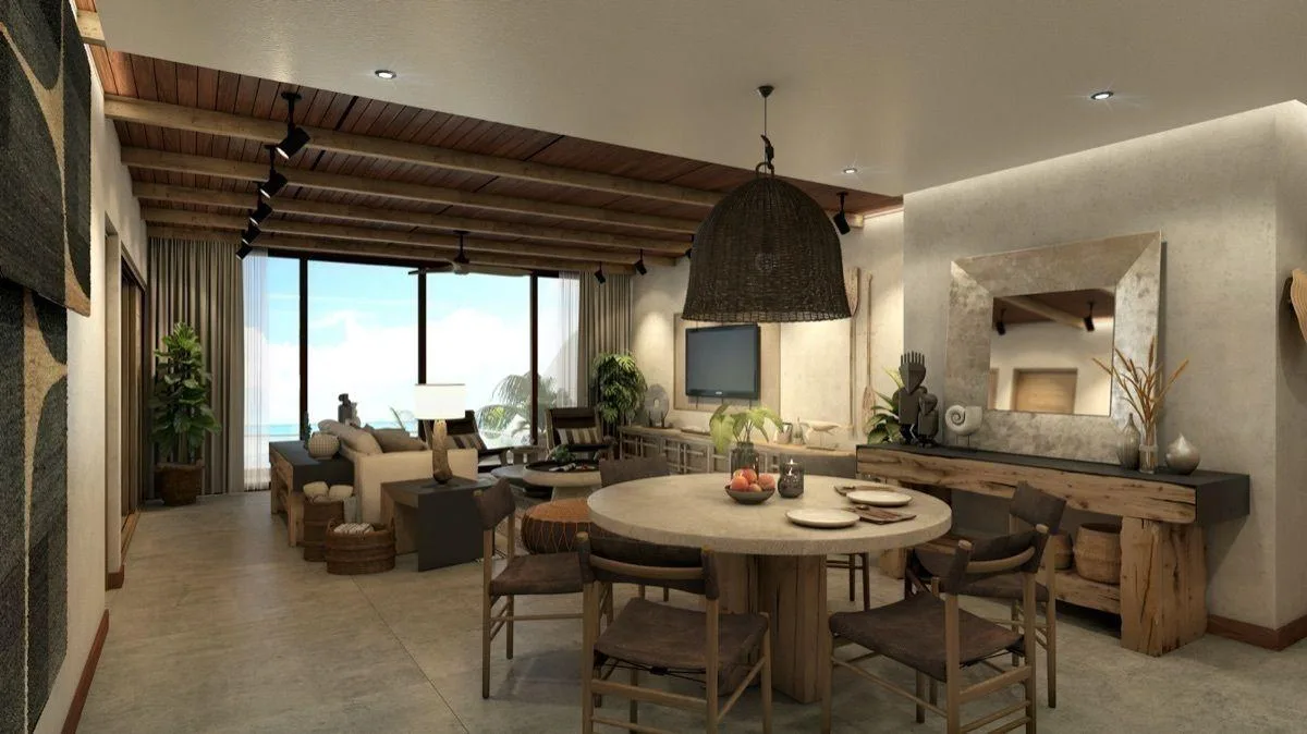 The property offers luxurious studios, one-bedroom, and two-bedroom condos and penthouses right on the beach. Layouts include lock-off units for additional occupancy. Residences are designed with spacious open floor plans, natural materials, and indoor-outdoor living spaces. Units feature tile floors and high-quality, durable finishes. Penthouse units offer premium ocean views and include private sun decks with glass infinity pools.
