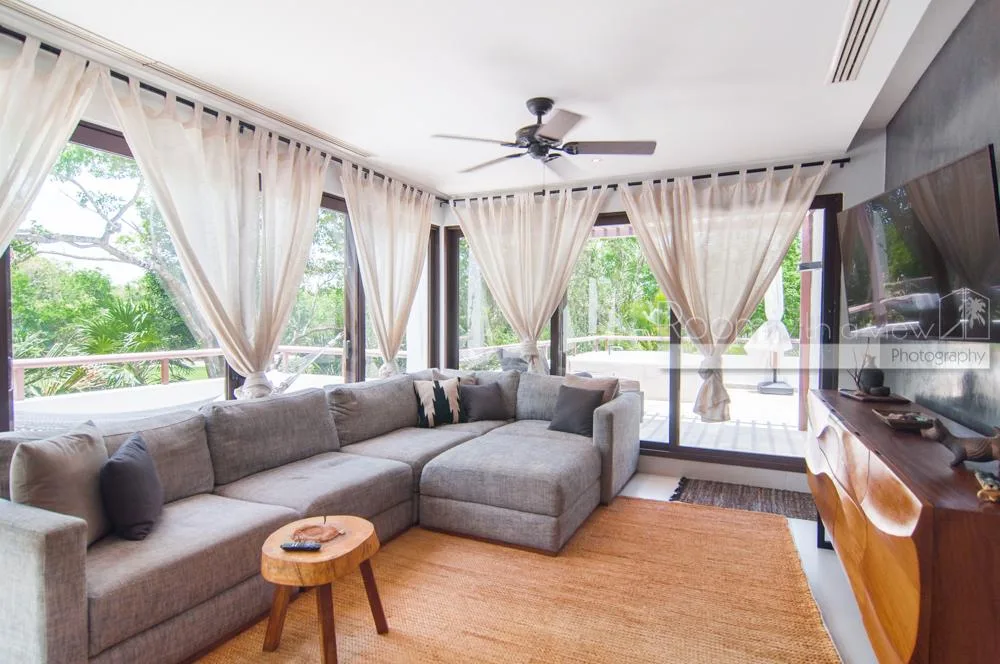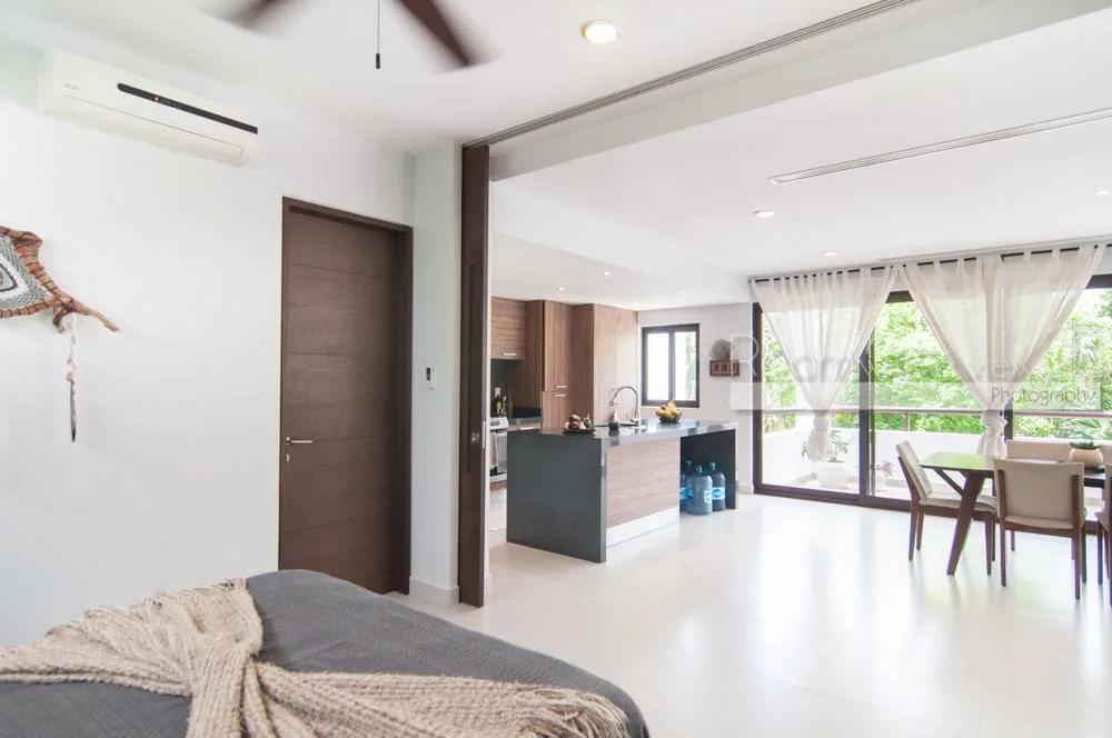 This bright and spacious 2-bedroom, 2-bathroom condo is located inside a secure gated community within the Tulum Country Club. The community is known for its lush, jungle-like surroundings and offers access to amenities including a 27-hole golf course, tennis courts, beach clubs, and restaurants.
