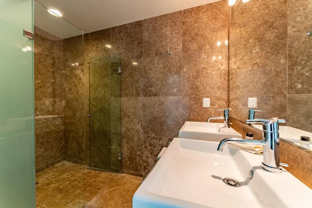 This condominium is located in the Tulum Country Club area of Akumal, Quintana Roo, Mexico. The residence features two bedrooms and two bathrooms.