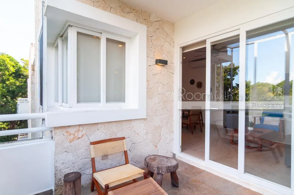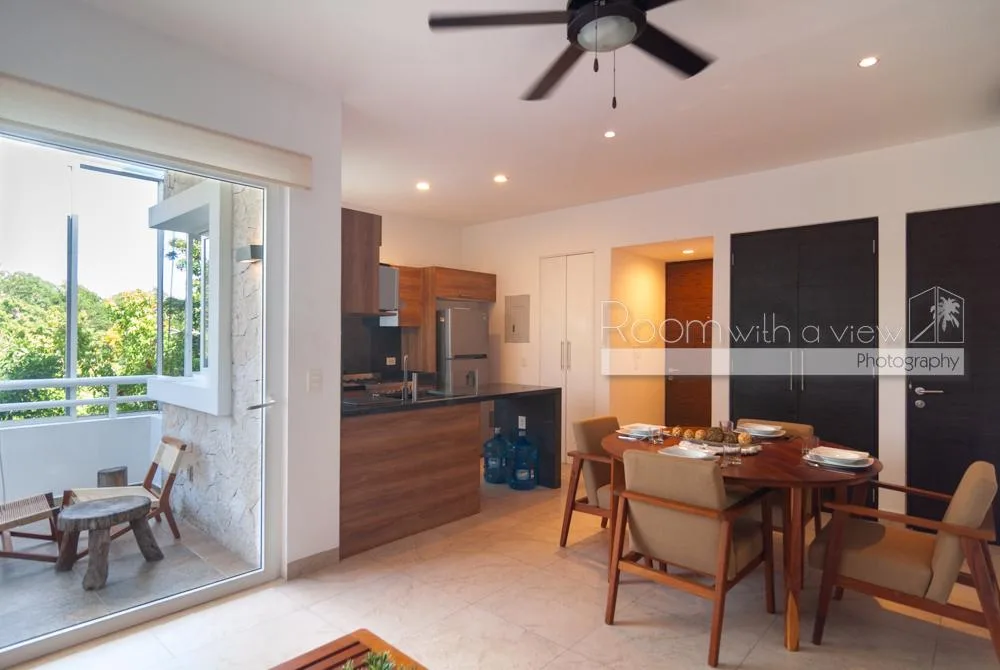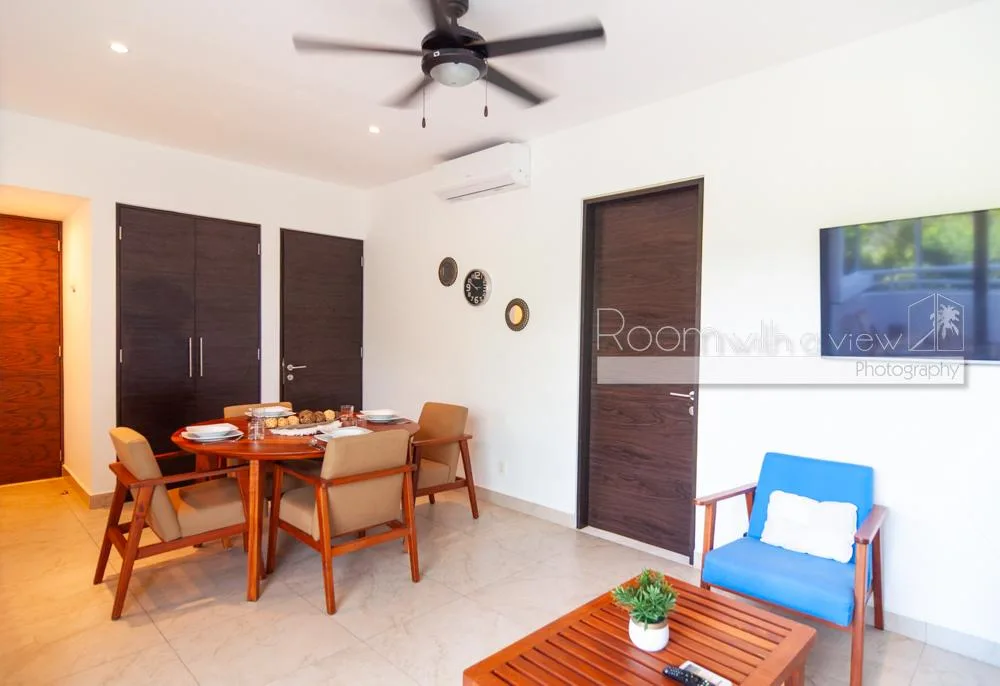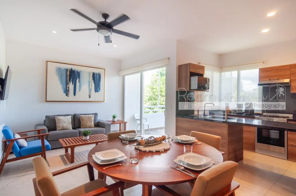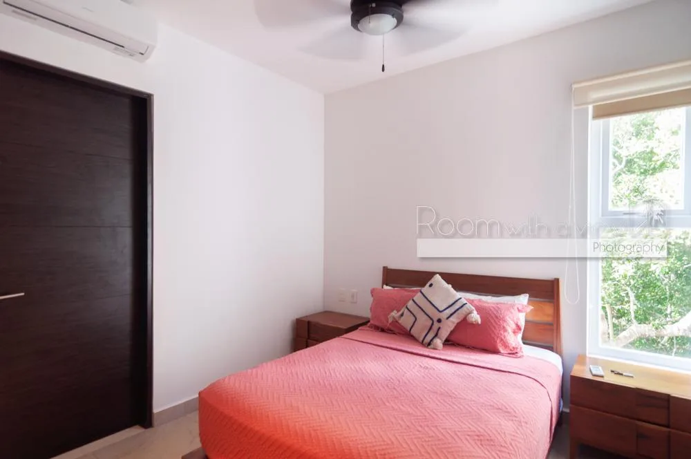 This condo is located within a 550-acre gated community in Akumal, surrounded by jungle. The community features walking paths, landscaped tropical gardens, and natural cenotes. A short stroll leads to a semi-private beach with turquoise water and snorkeling opportunities. Access is controlled with 24-hour security.