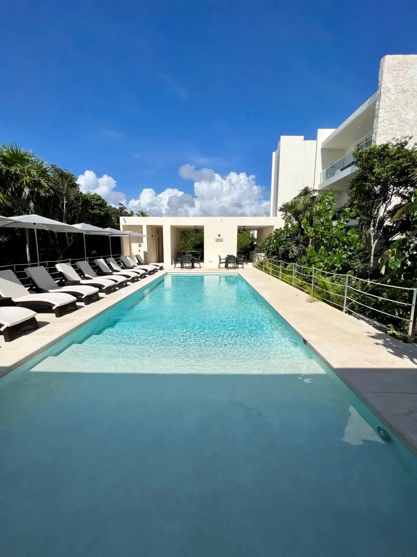 The property is situated between Tulum and Playa del Carmen, providing access to the Tulum Country Club and the PGA Riviera Maya golf course. Akumal's beaches, cenotes, and attractions are minutes away. Cancún International Airport is approximately 50 miles (80 kilometers) distant.