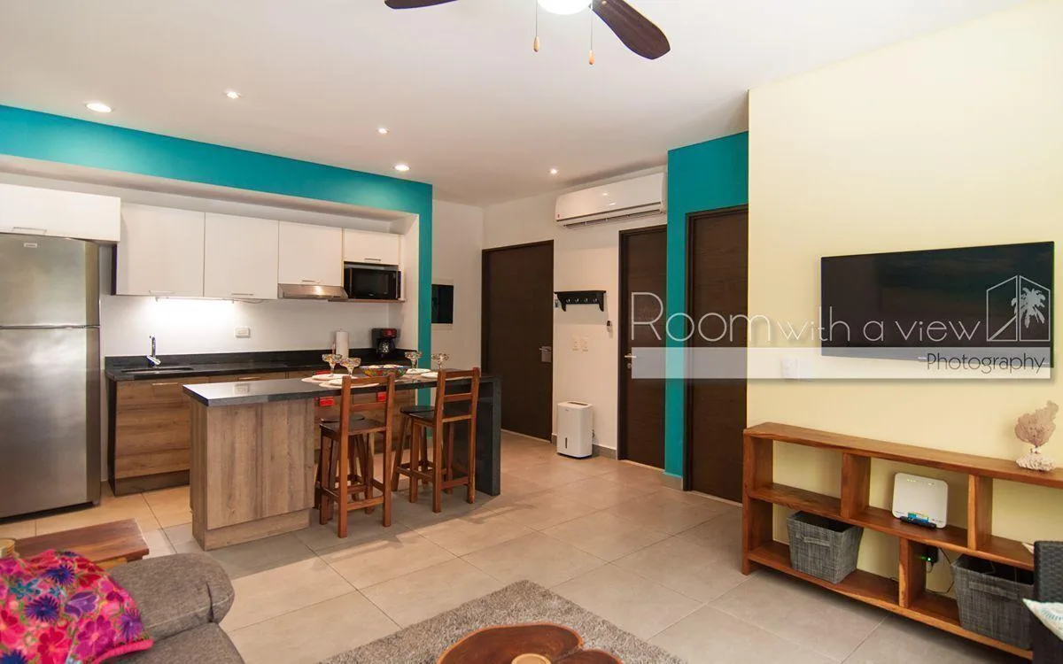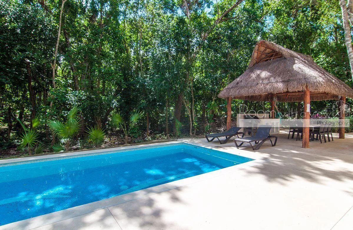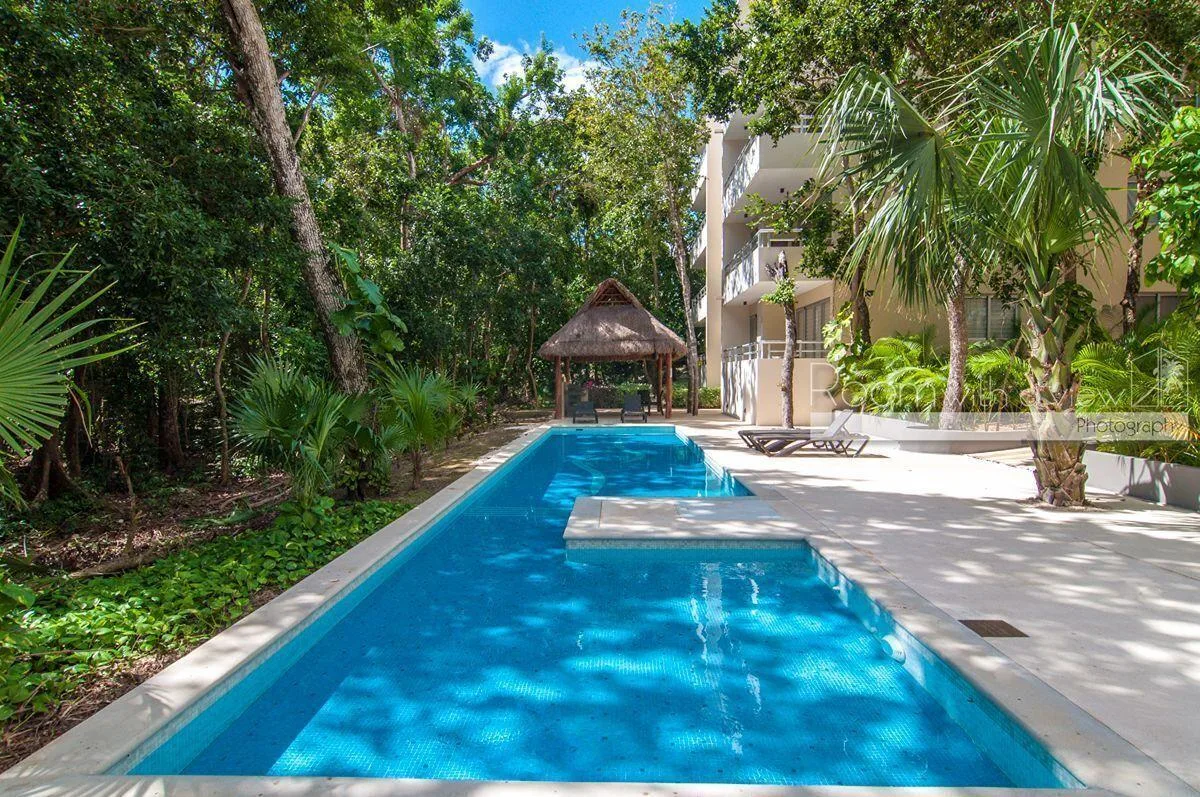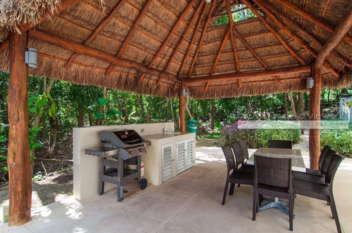 The building provides a community pool and a palapa equipped with a dining set and a grill.
