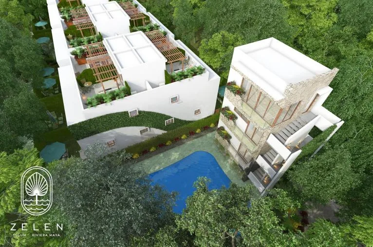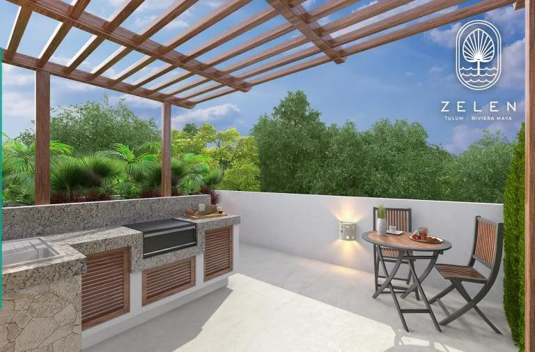 This condo for sale, ideal for vacationing or generating long-term rental income, is located in Akumal just a few meters from the beach. The space is distinguished by its functional design and a perfect terrace for relaxation. It features a swimming pool with views of the surrounding tropical gardens.