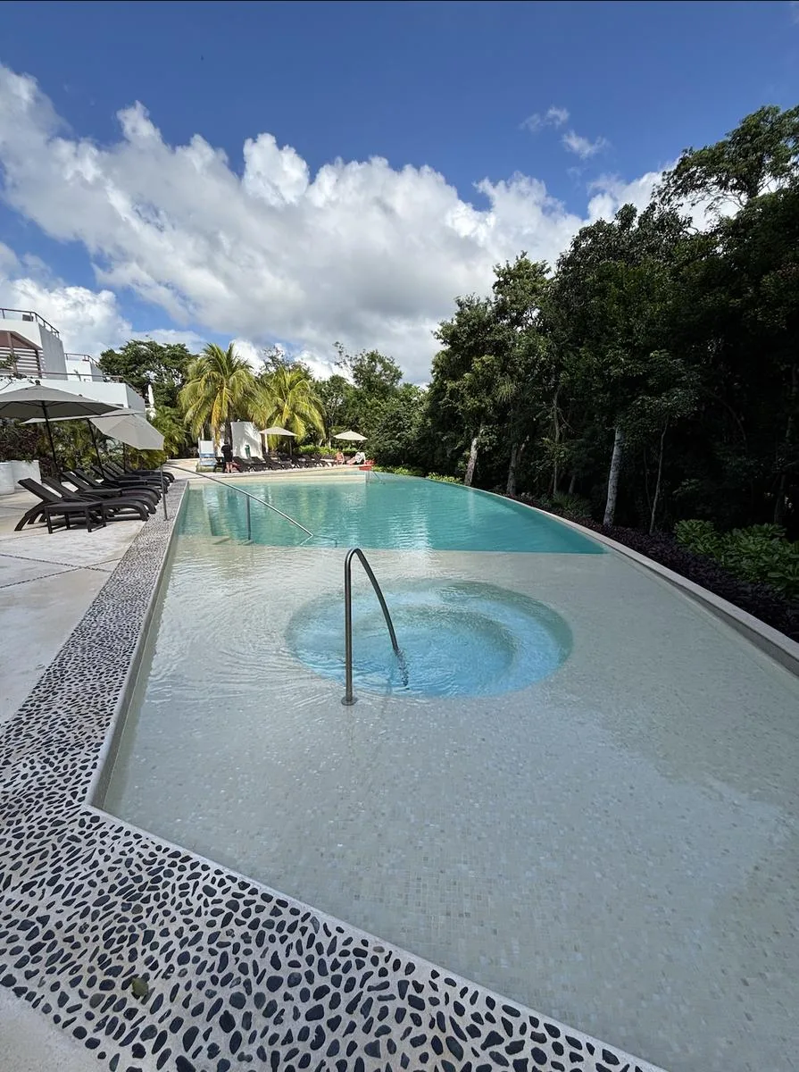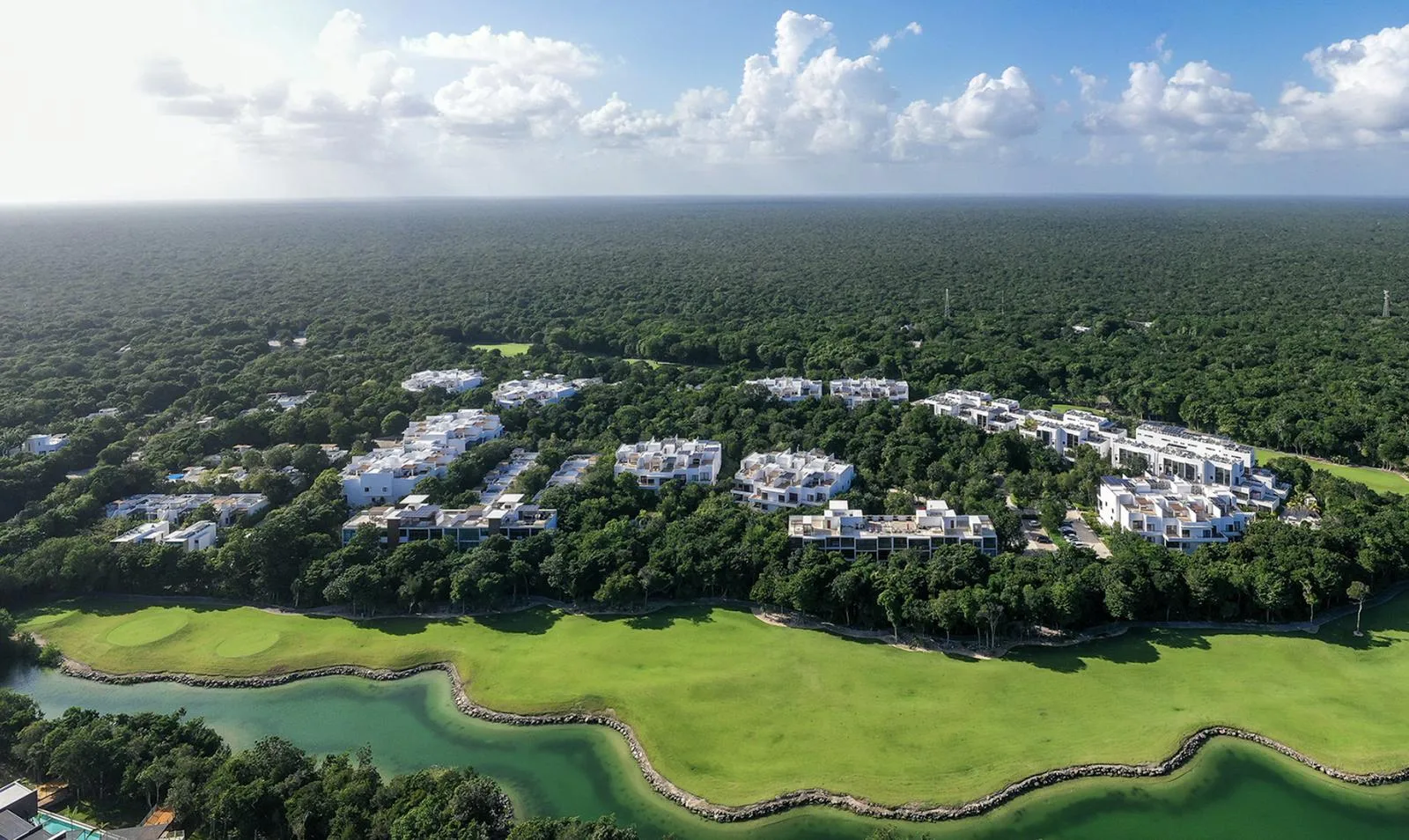 The property is located within Tulum Country Club, offering proximity to the PGA Riviera Maya golf course. The community provides access to two private beach clubs and an optional membership at a wellness center featuring a spa, gym, and restaurant. Additional community features include an international school and a fresh market.