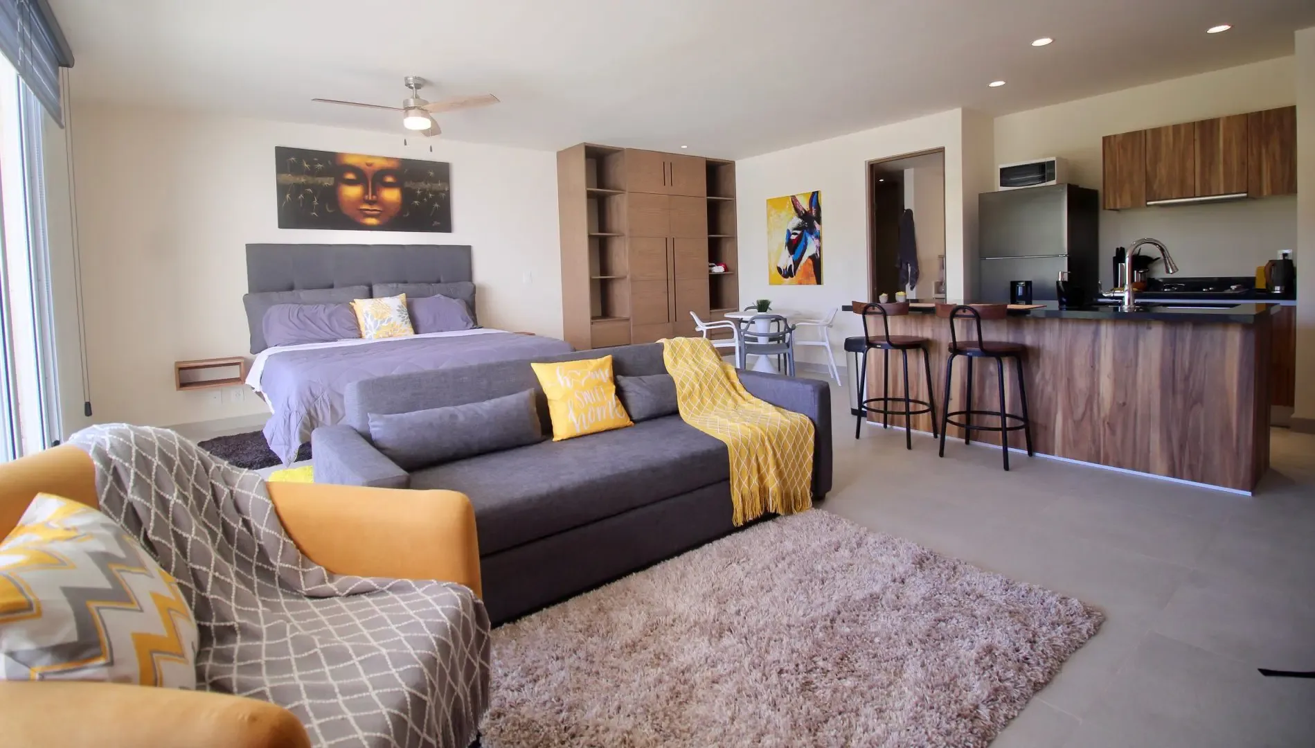 This listing is for a fully furnished studio loft in a new building in Akumal. The building, Tao Santamar, is situated just a few steps from a secluded beach, providing privacy and easy access to white sandy shores.