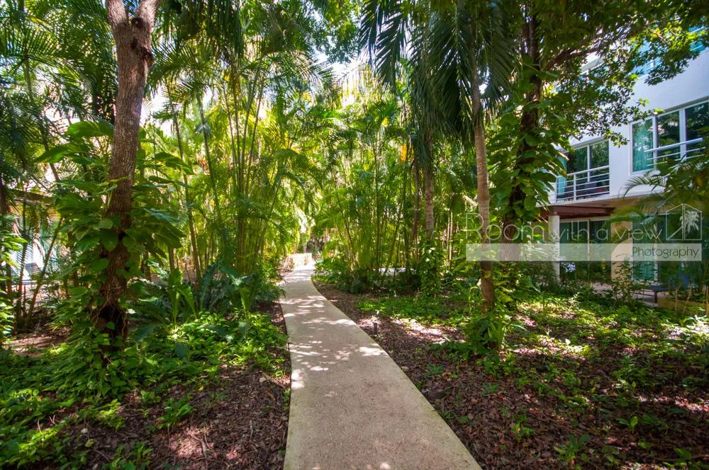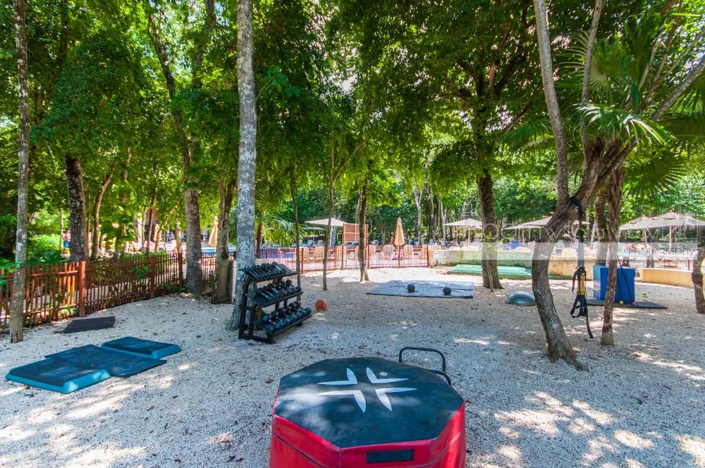 Residents have access to a 27-hole golf course, a shuttle service to Kay Beach, and access to the Jungle Fish Beach Club.
