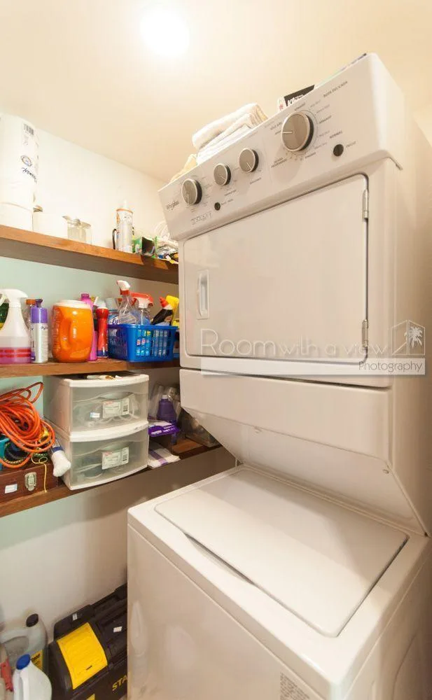 This updated residence features two bedrooms and two bathrooms. It includes cathedral ceilings and a spacious open floor plan. The fully equipped kitchen contains an island, and the home has a sun-filled living room, a dining area, and a separate laundry room with a washer and dryer. The living room opens onto a large covered terrace equipped with a grill.