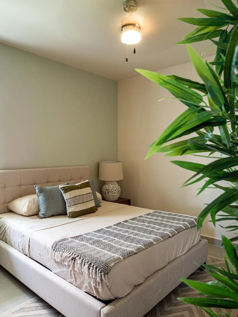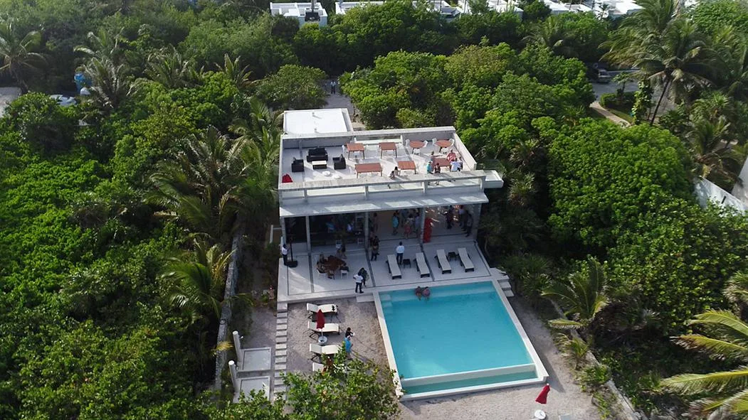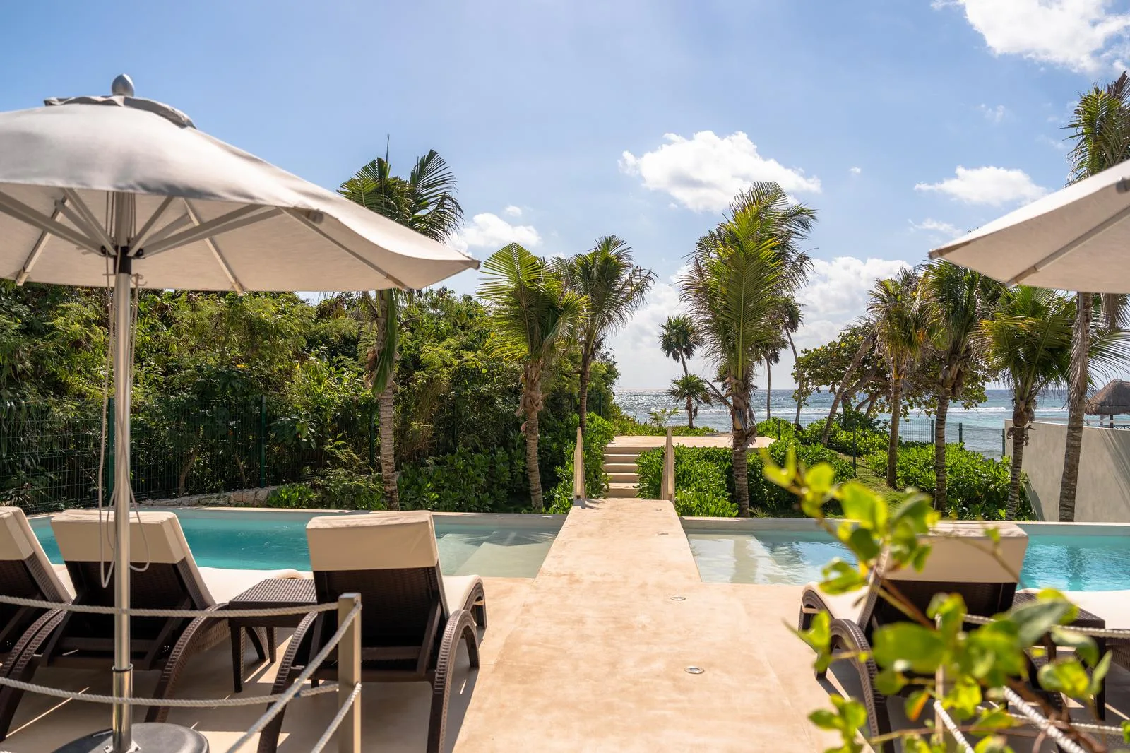 This two-bedroom unit with a lock-off is available for immediate delivery. It offers views of the sea and is part of a new, unique development just steps from the beach in Akumal. The development features a private beach club and is located approximately 15 minutes from Tulum.