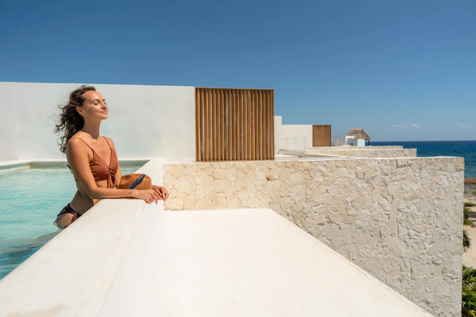 Additional facilities include a yoga studio, a wellness center, and a common rooftop terrace with views of the sea. The Jungle Fish Beach Club restaurant is also part of the property.
