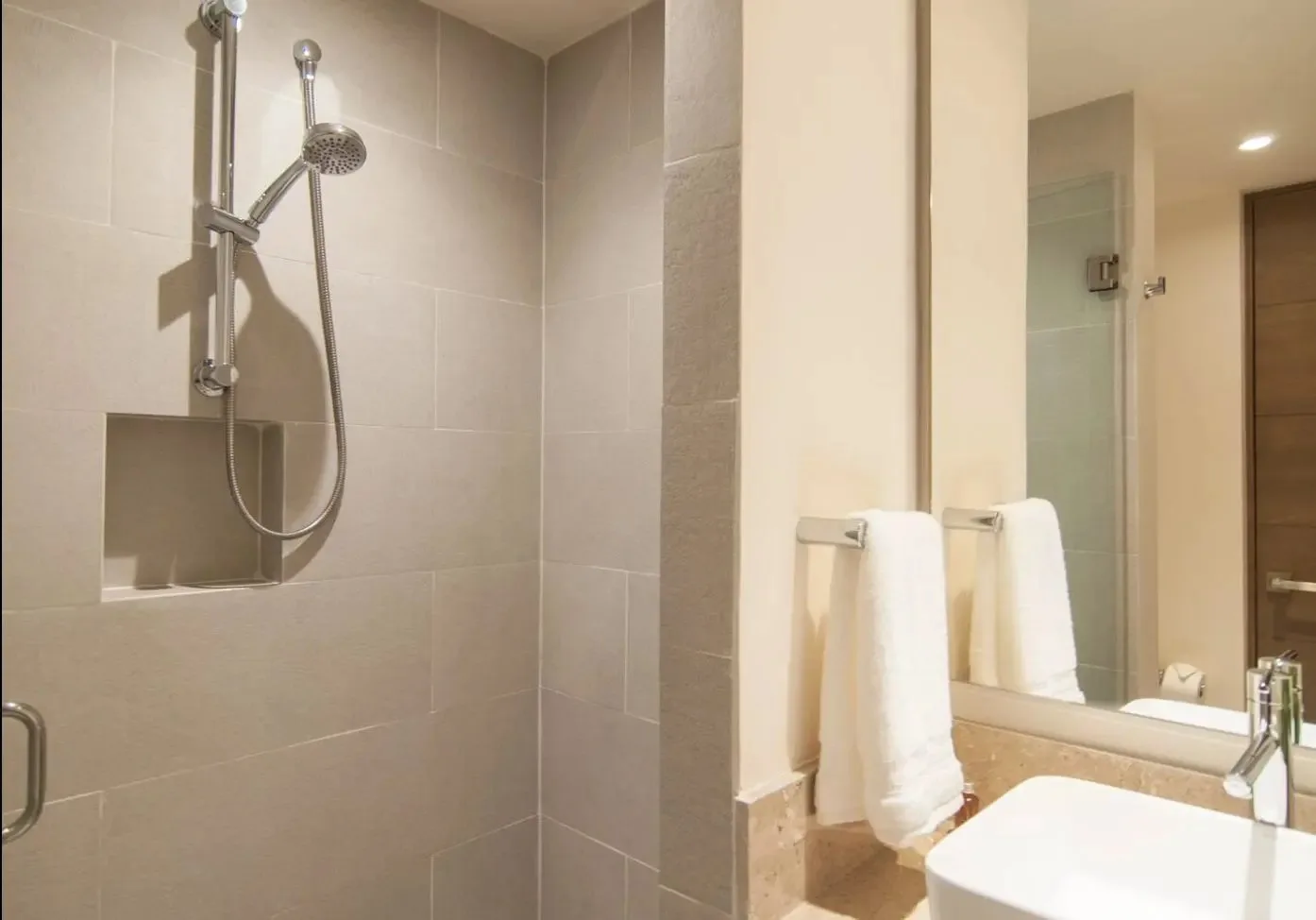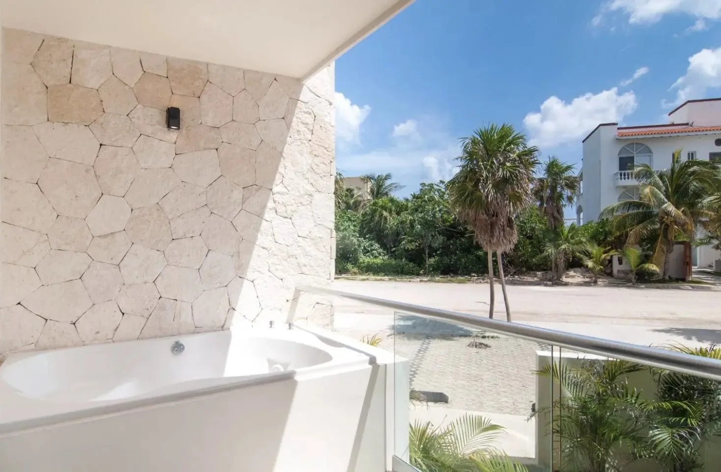 The development, Santamar, comprises 117 units across seven buildings. It is located in Punta Sur Akumal, a short walk from a secluded beach with direct, private access to the Caribbean Ocean. Each building features its own rooftop pool with an ocean view.