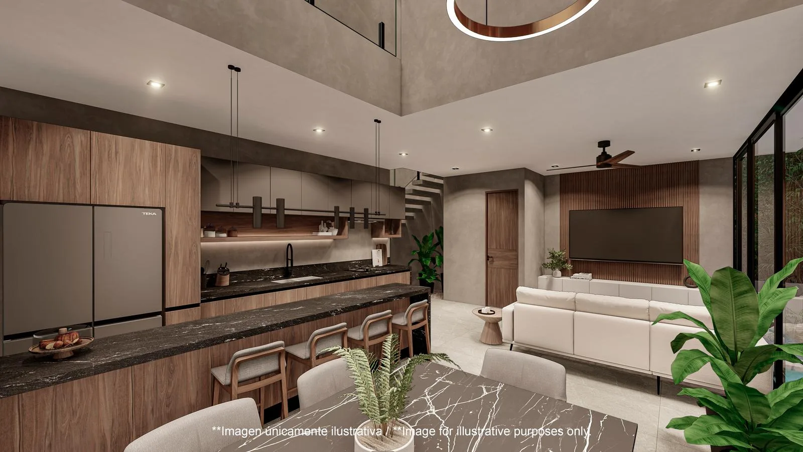 This house presents a balance of elegance, comfort, and exclusivity. It is a 3-bedroom residence featuring a double-height design, situated within the prestigious Country Club residential community, which provides access to a private beach club and a golf course.