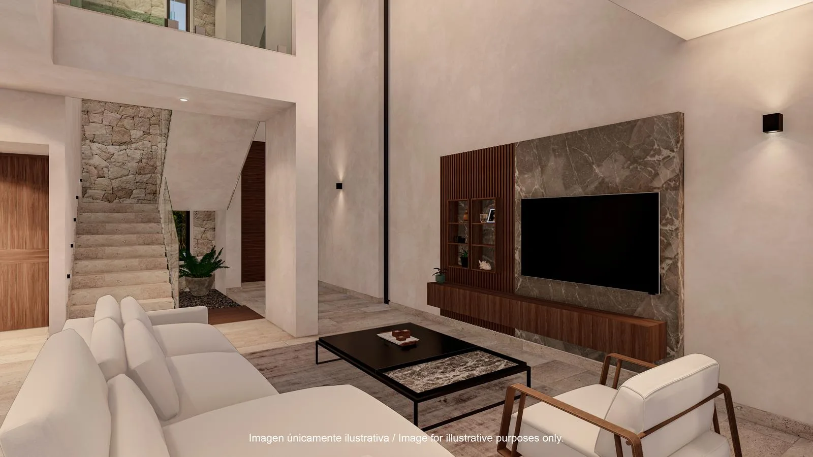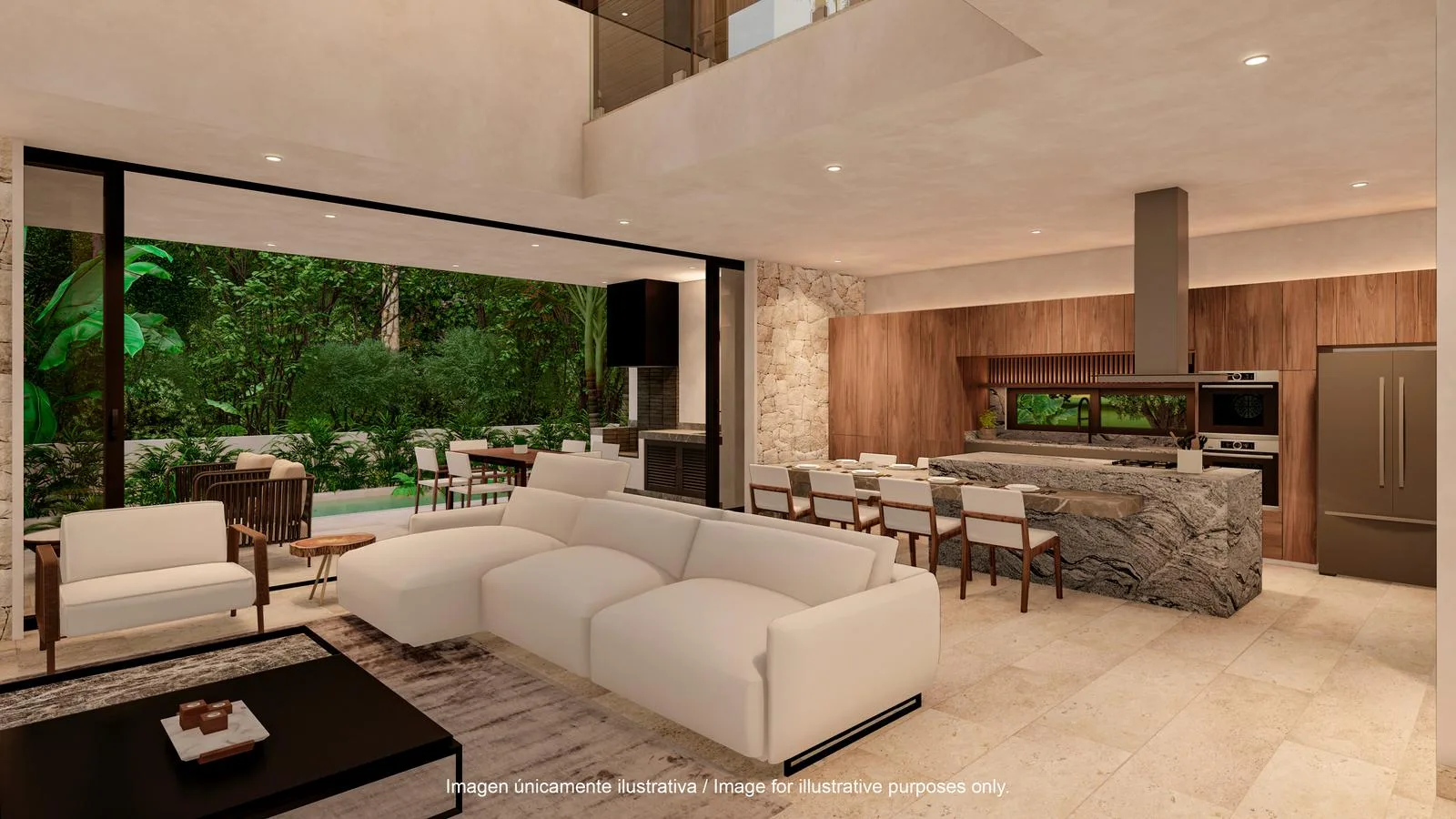 This 3-bedroom house features double-height ceilings and is located in the Country Club residential area. The property offers access to a private beach club and a golf course.