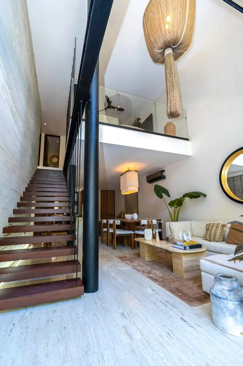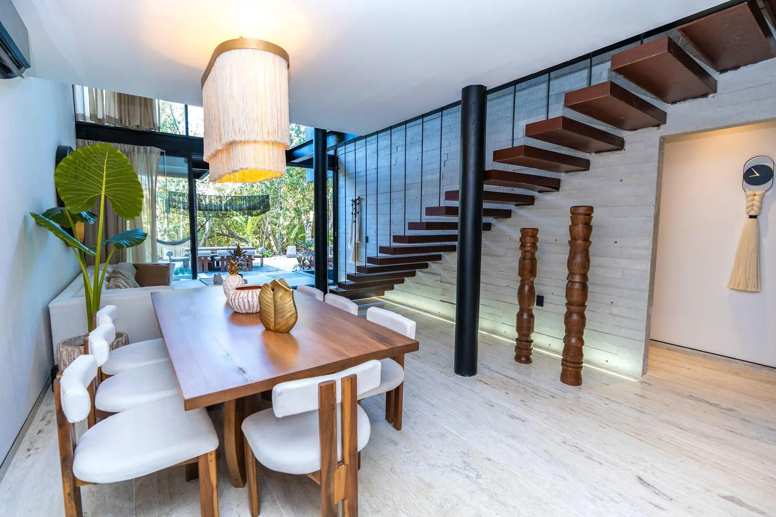 This exclusive three-bedroom house features a private pool and is located within the Country Club residential development in Tulum. The home offers a lifestyle of luxury, comfort, and harmony with nature without compromising high-level amenities or its prime location near the sea.