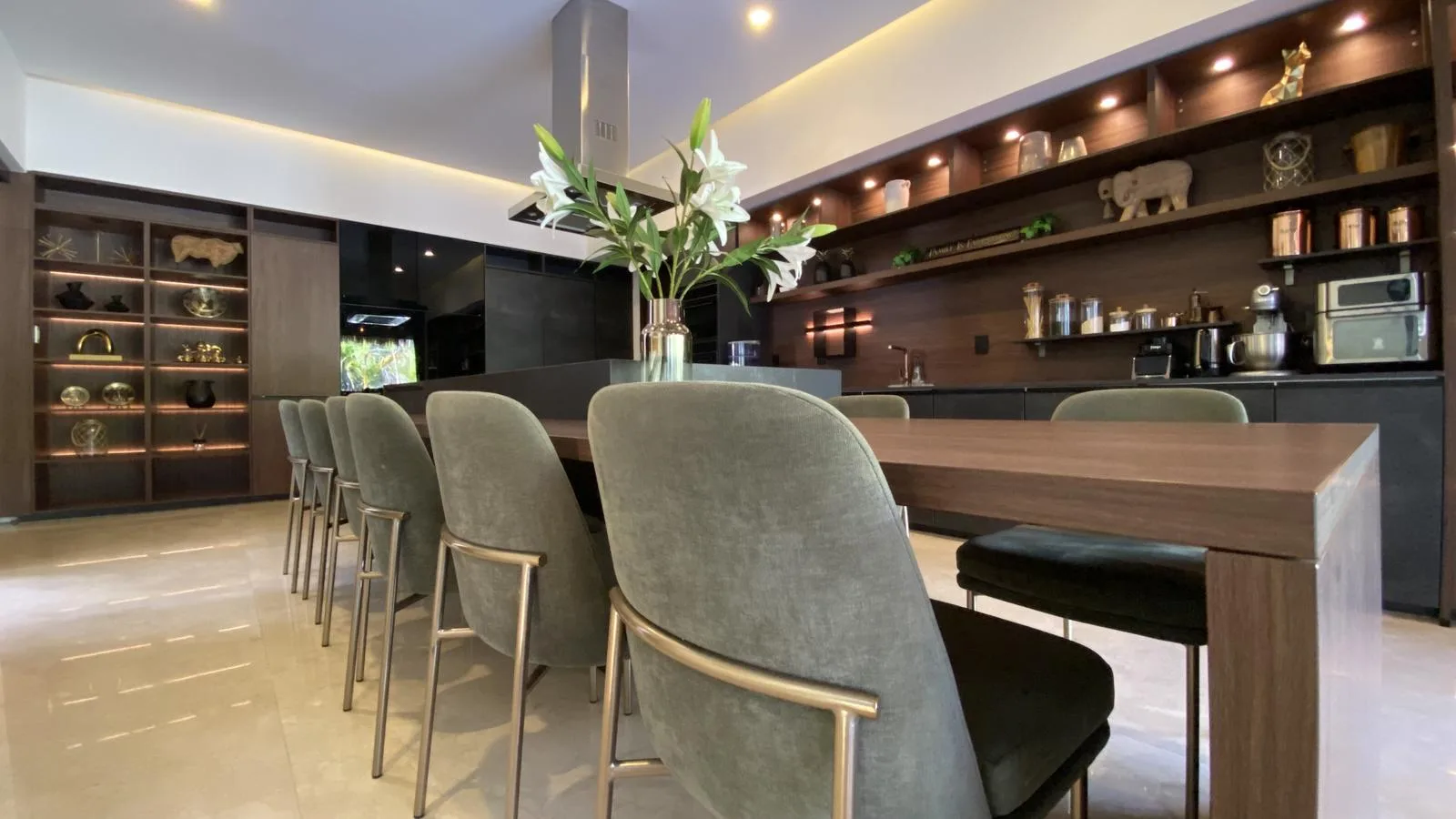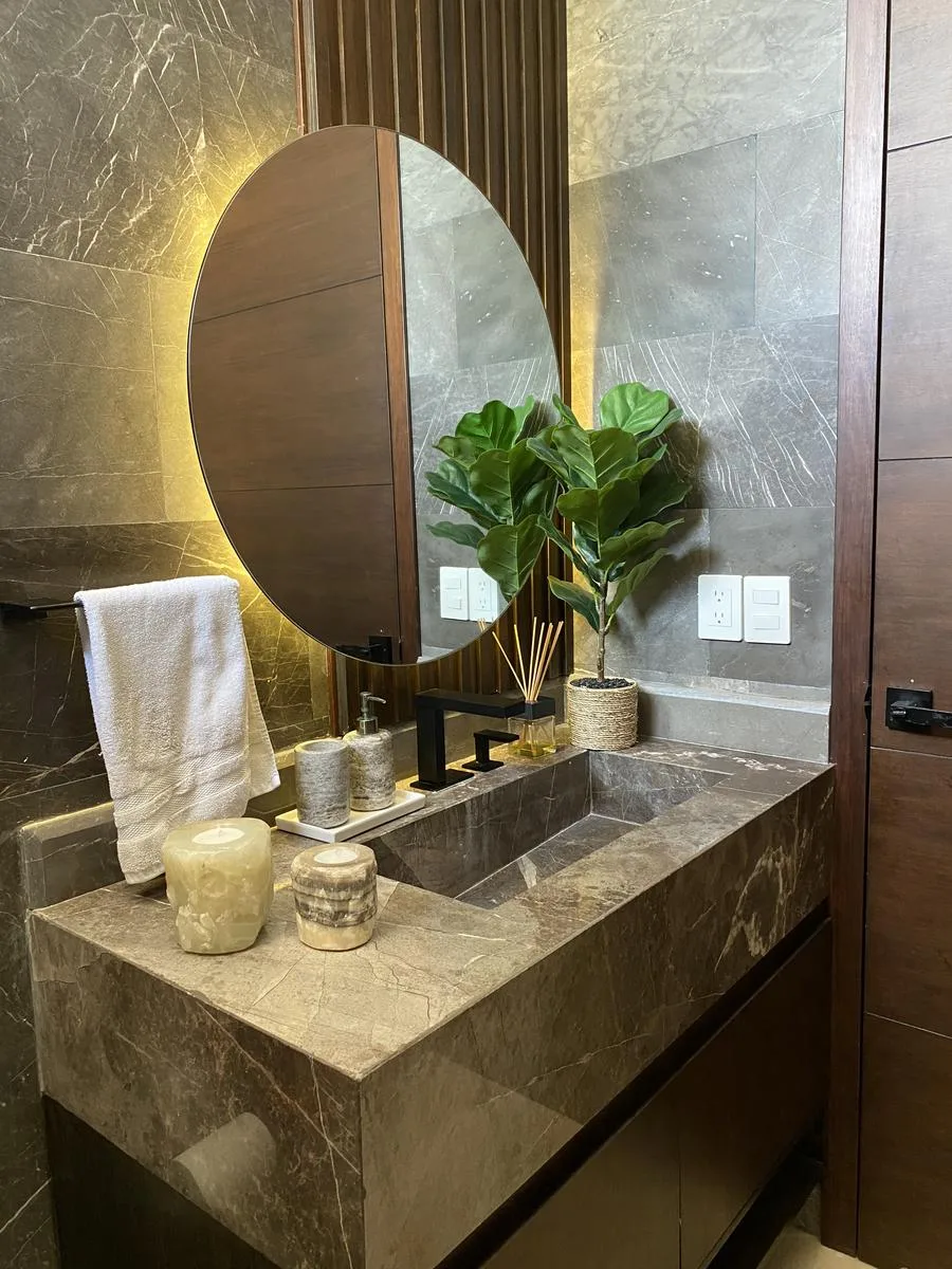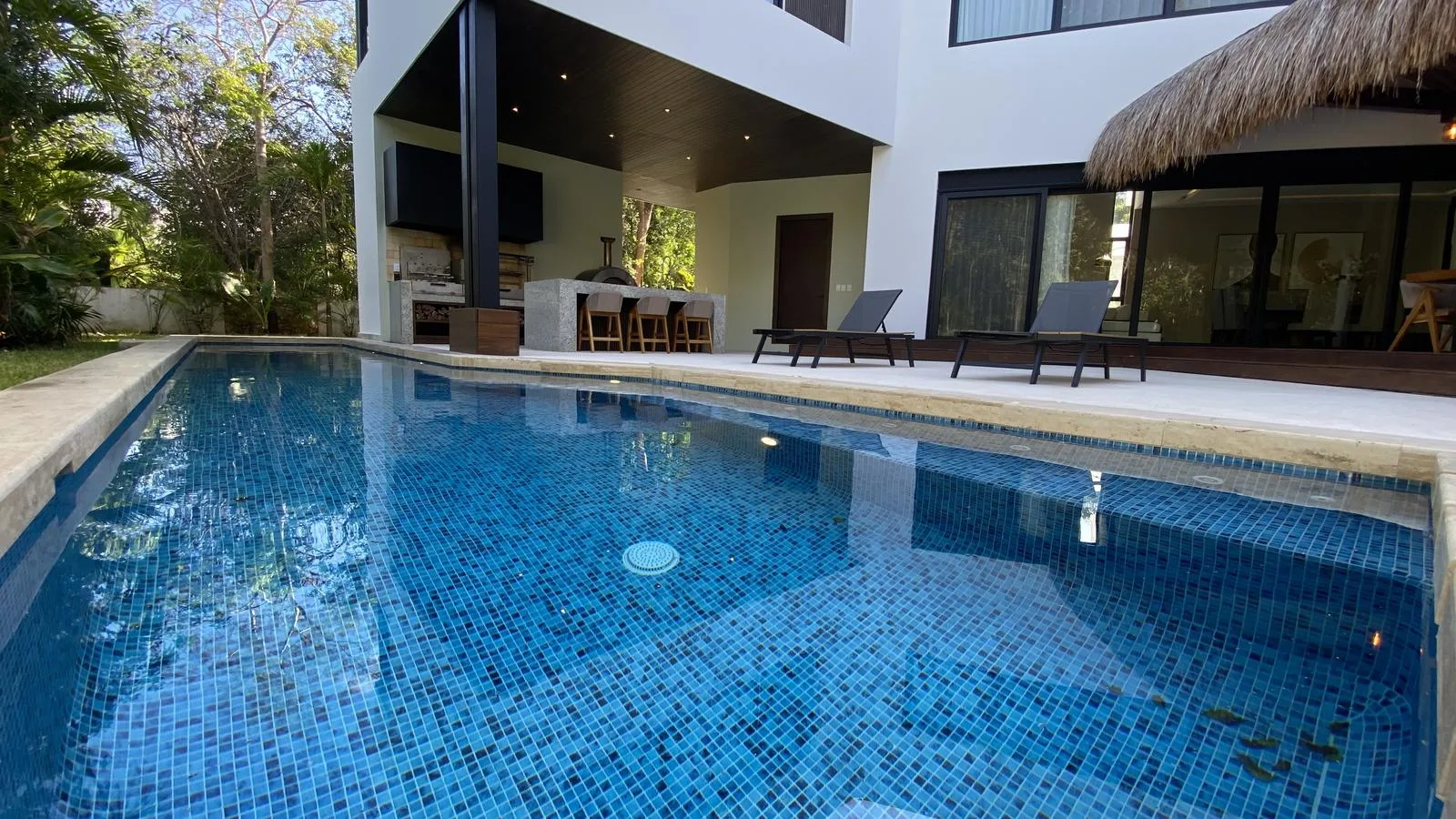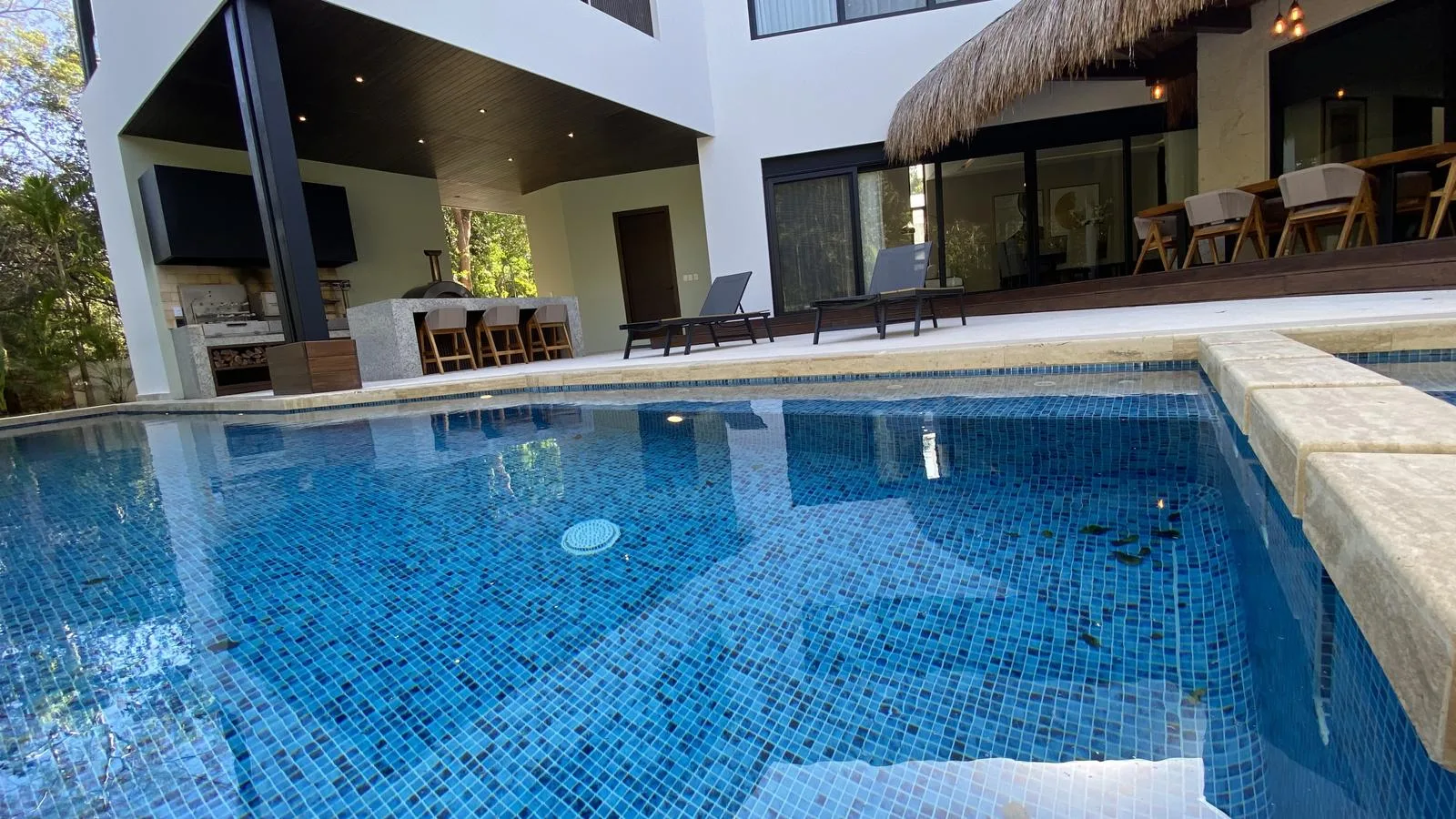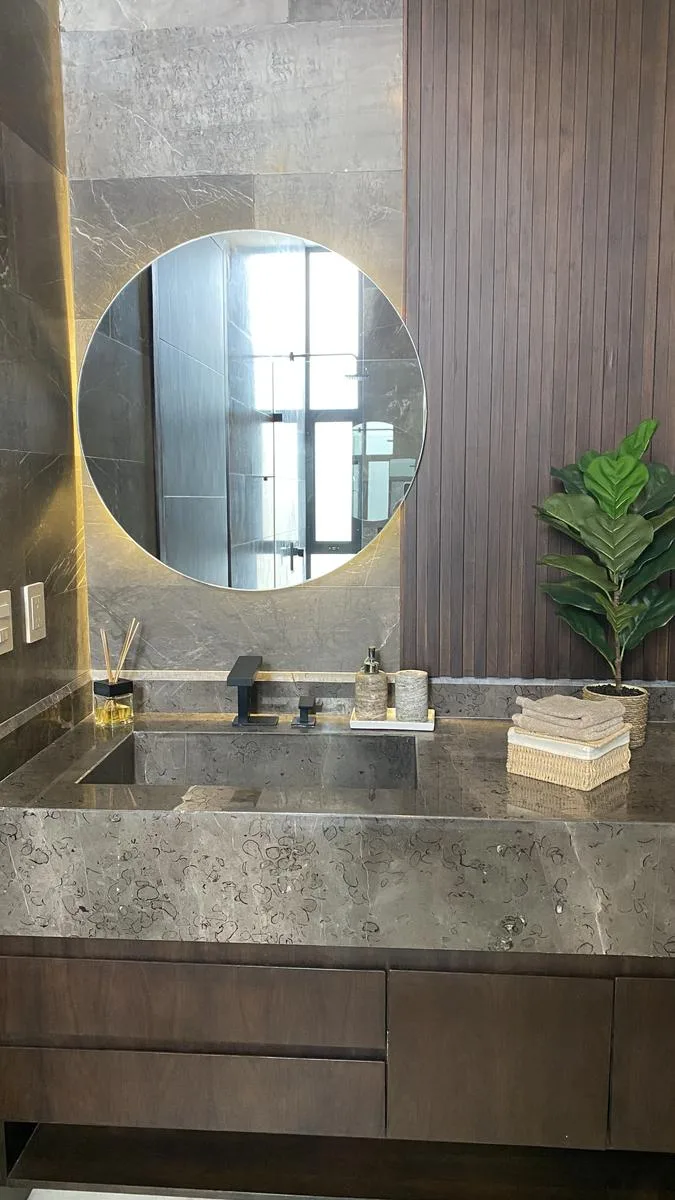 This impressive 645 square meter residence is designed with high-end finishes, including a German kitchen, Italian appliances, Spanish marble, and Helvex fixtures. The property features five bedrooms, four full bathrooms, and two half bathrooms. It includes a private pool, a gym, and a home office.