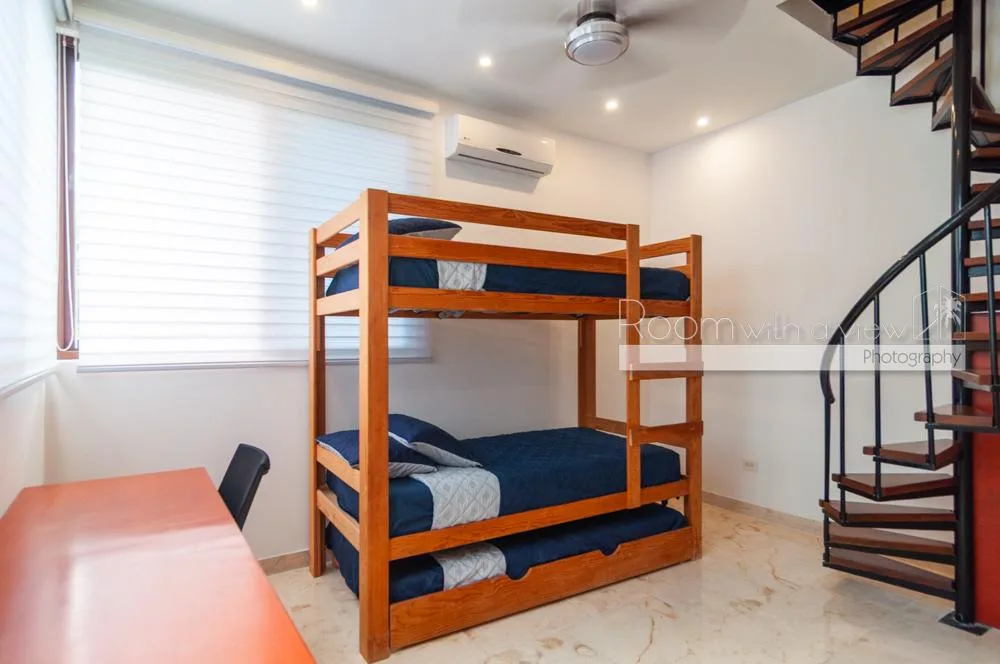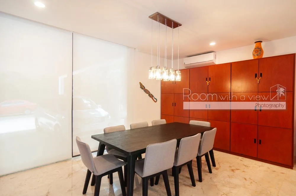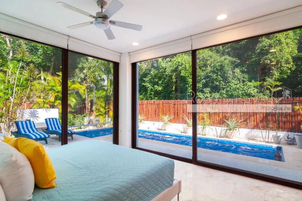 The property is located within Tulum Country Club in Akumal, a low-density gated community surrounded by lush jungle and minutes from the Caribbean coast. The community offers a pool, a gym, and family-friendly spaces. Residents have access to golf and beach club privileges.