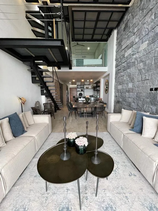This exclusive penthouse is for sale in Bahía de Akumal, Tulum. Akumal is a charming coastal village known for having one of the best bays and reefs in the Mexican Caribbean, where it is possible to swim with turtles and enjoy rich marine biodiversity. The area is approximately 20 minutes from Tulum's town center and offers a relaxed atmosphere with restaurants, cafes, and shops.