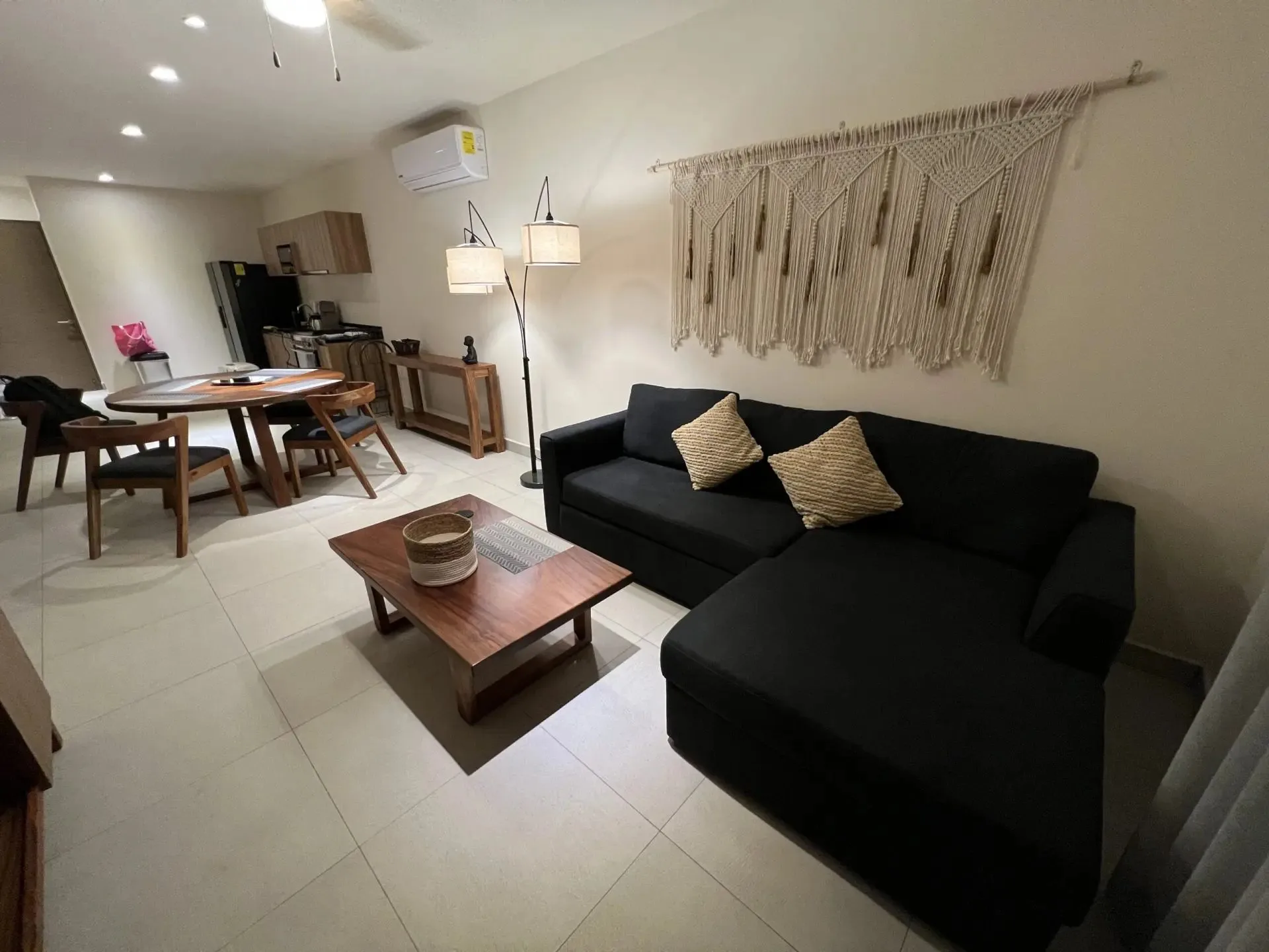 This completely finished resale condominium is located on the rooftop of the Ocean View building in Santamar. It has been professionally decorated with custom, handcrafted local wood furniture tailored to the unit. The view overlooks the vegetation from the garden unit below, providing peace and privacy. Being on the second floor allows for pleasant sea breezes. The unit benefits from natural cross-ventilation as it is situated only one row back from the sea within the exclusive Punta Sur community, which is opposite multi-million dollar homes and estates.