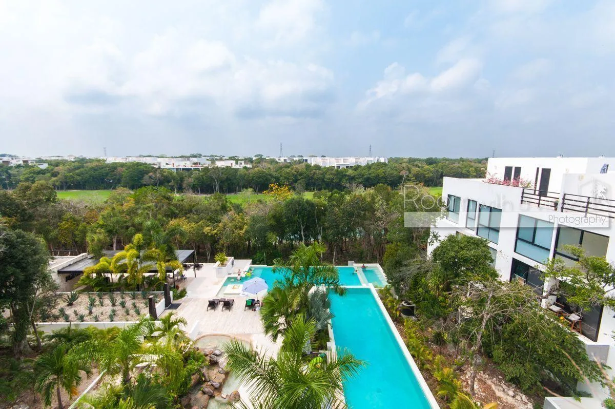The penthouse is located in Anah Village within Akumal. It is situated within a 717-acre residential resort near a golf course and minutes from the Caribbean coast. The Tulum Country Club area is in the Riviera Maya, approximately halfway between Playa del Carmen and Tulum, and about 50 miles south of Cancun International Airport.