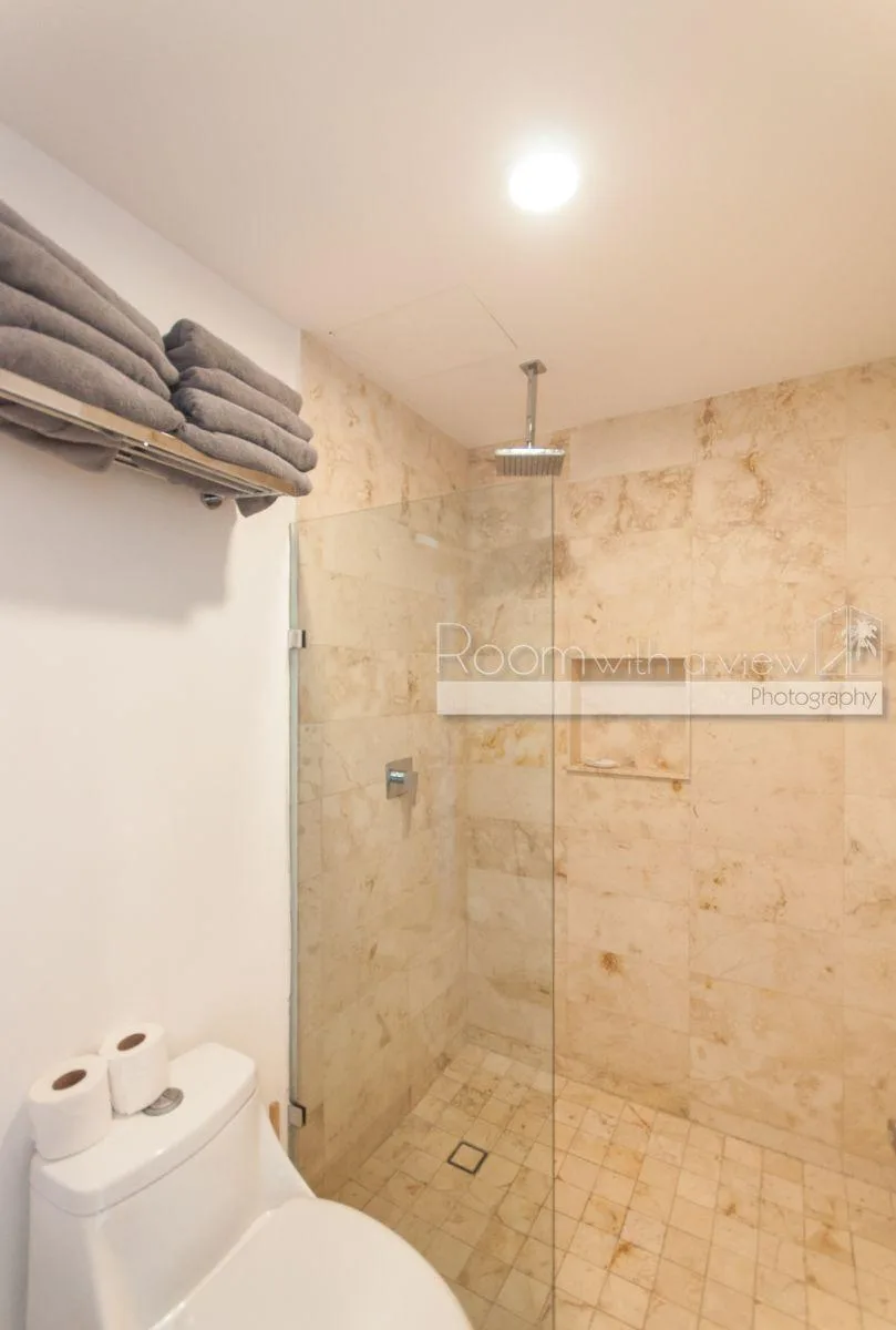 A large community pool and lounge area is located on the ground floor. The penthouse has tile floors and durable, easy-to-maintain finishes. It is fully furnished and equipped with ceiling fans and air conditioning.