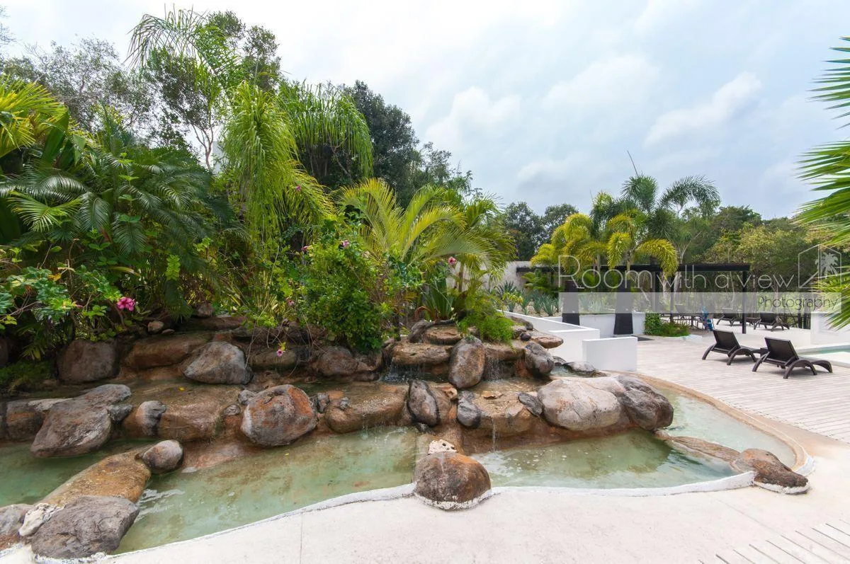 Residents have access to the resort's amenities, including a 27-hole golf course. There is shuttle service to Kay Beach and access to the Jungle Fish Beach Club.