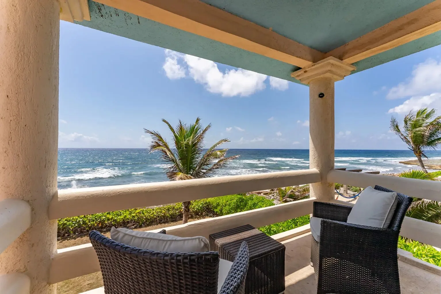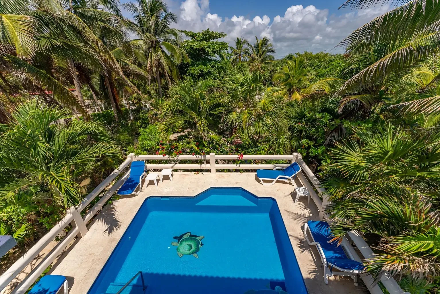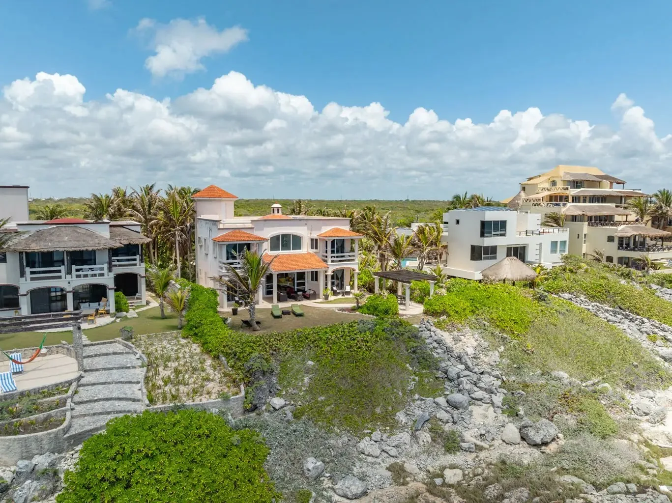 Located in the center of Akumal Norte, this beautiful 5-bedroom house is within walking distance of Akumal Village and the beaches. Situated by the ocean between Akumal Bay and Half Moon Bay, it is a refined option for groups.
