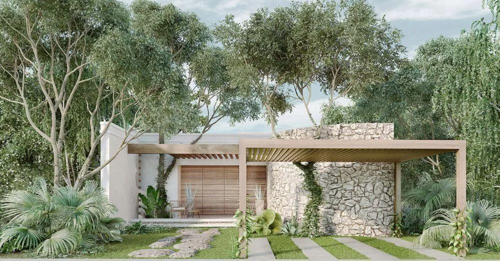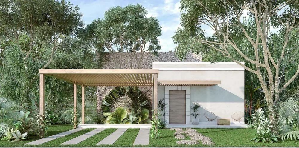 These homes are situated within a gated community at the Xpu-Ha Beach Residential Resort. The location is in the Riviera Maya, approximately 20 minutes south of Playa del Carmen and 30 minutes from Tulum. The area provides access to beaches and is surrounded by natural features.