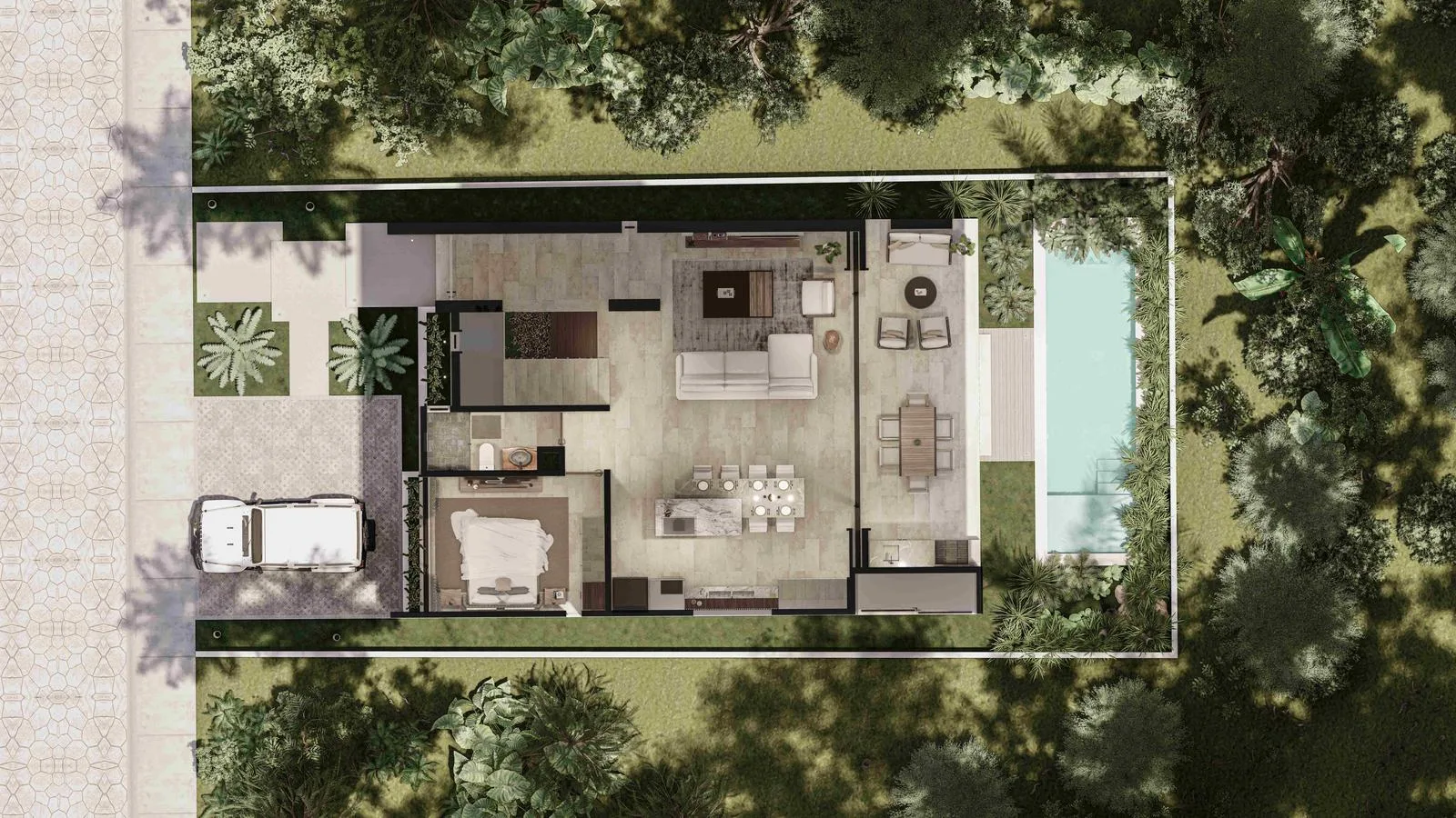 This luxury villa is situated within the Tulum Country Club. The property is constructed on a 300 square meter land plot and encompasses 419. 65 square meters of built area.