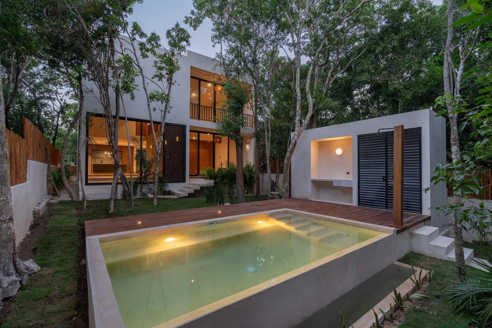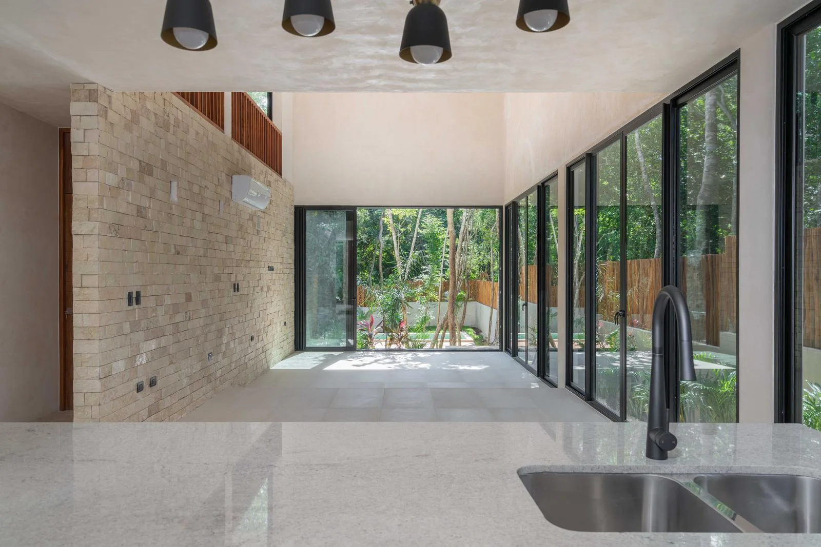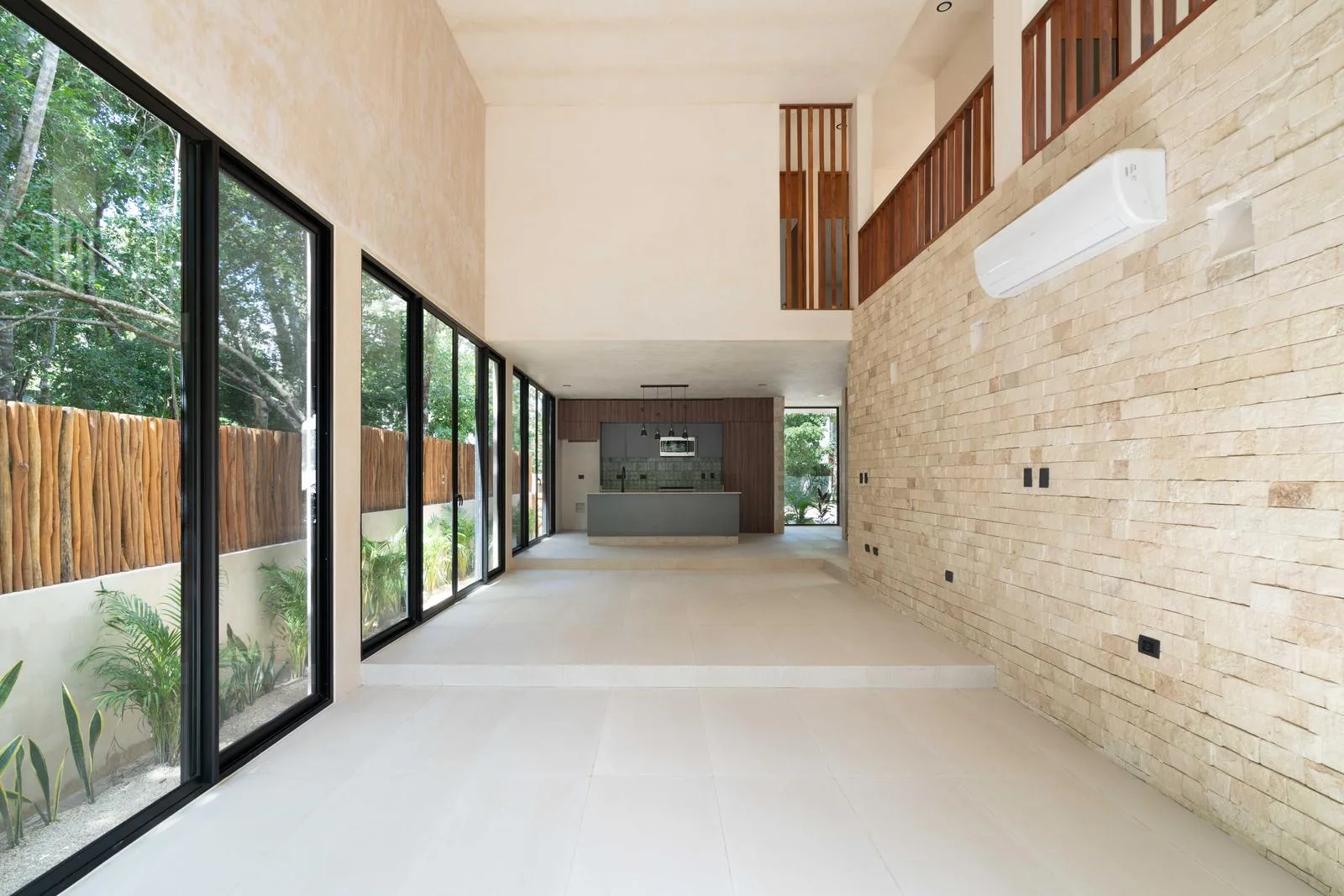 This new, well-equipped home is for sale, offering high-quality spatial design and abundant natural light. It is located within Villas Caribe in Bahía Príncipe, near the Kay Beach Club and the PGA Riviera Maya golf course.