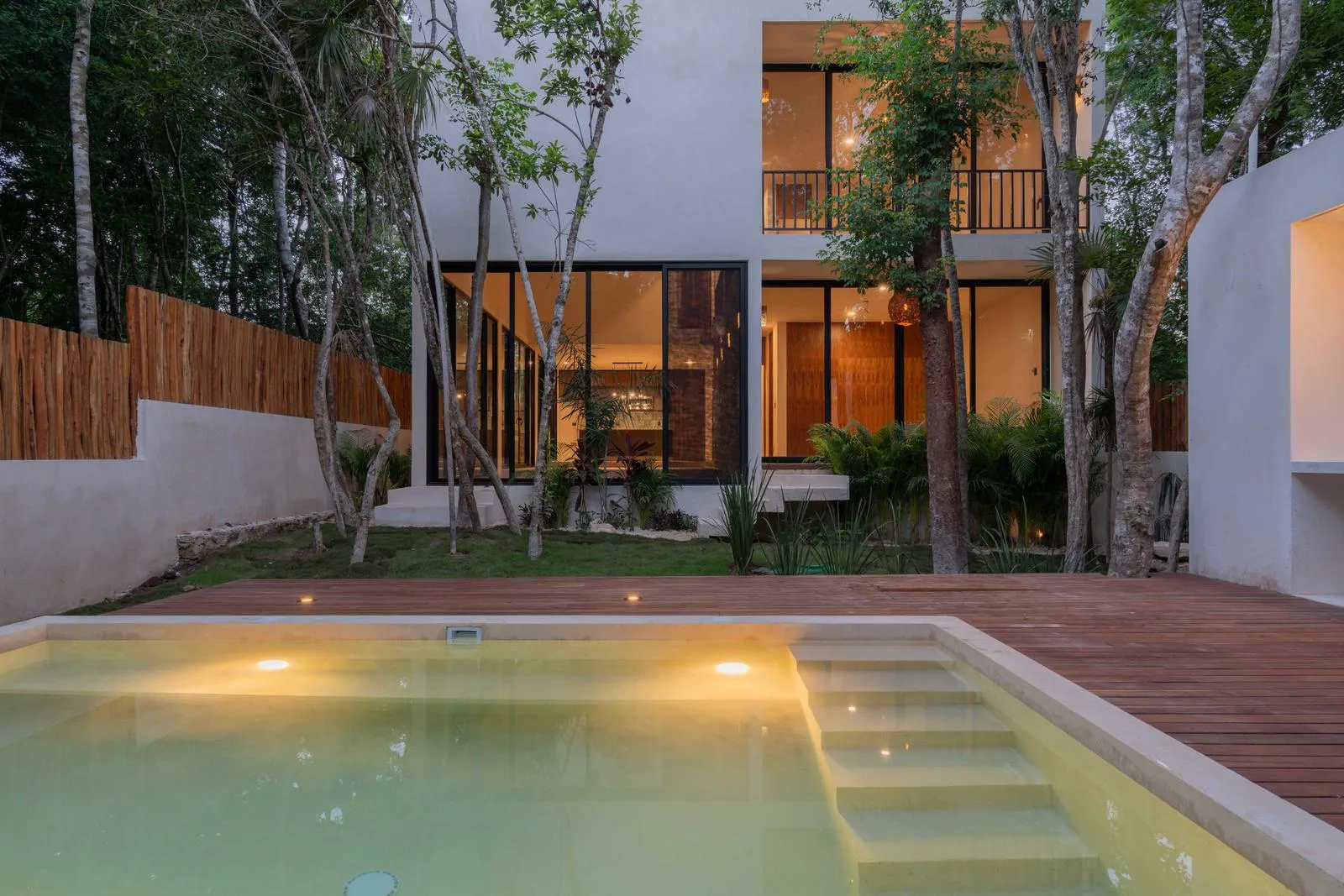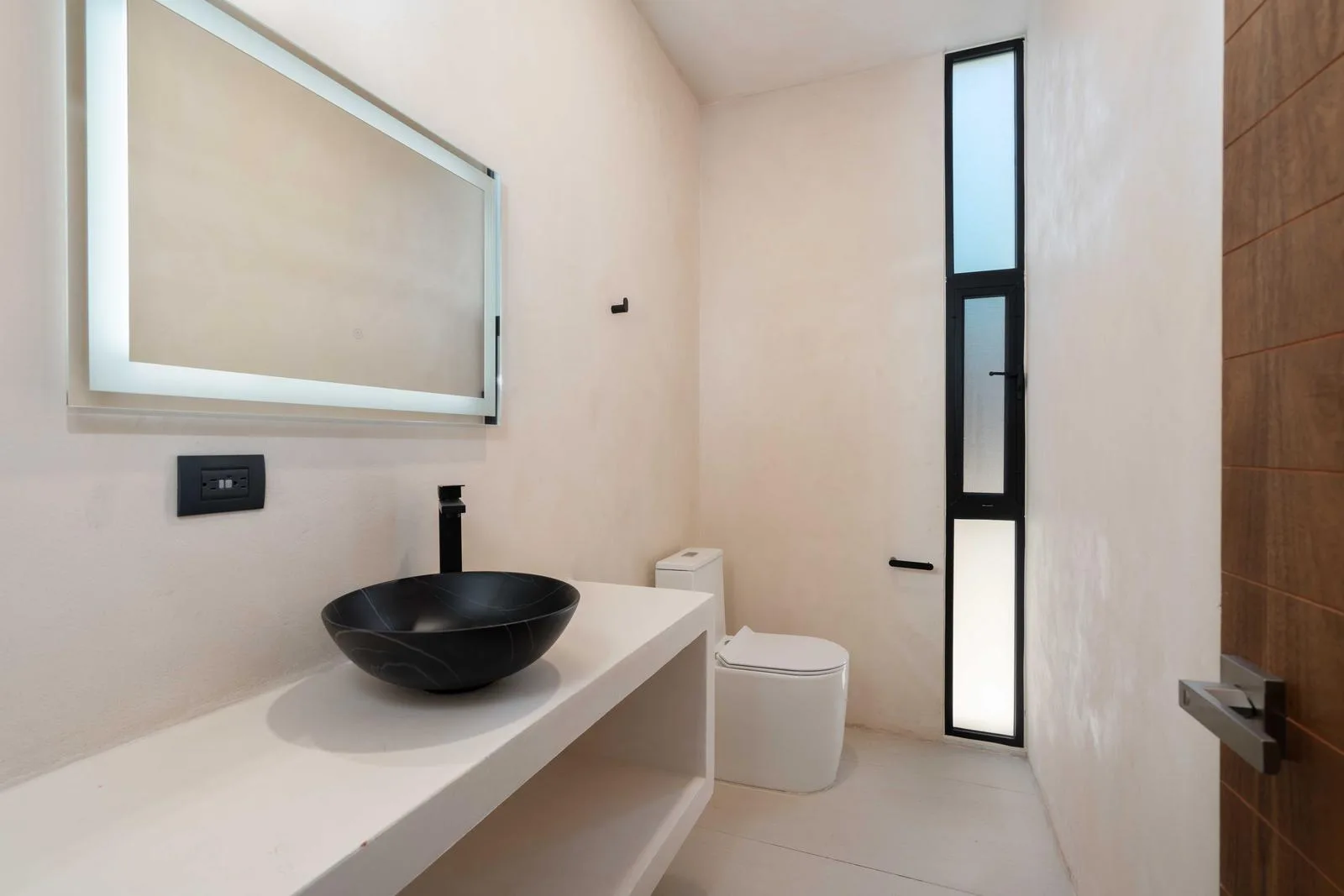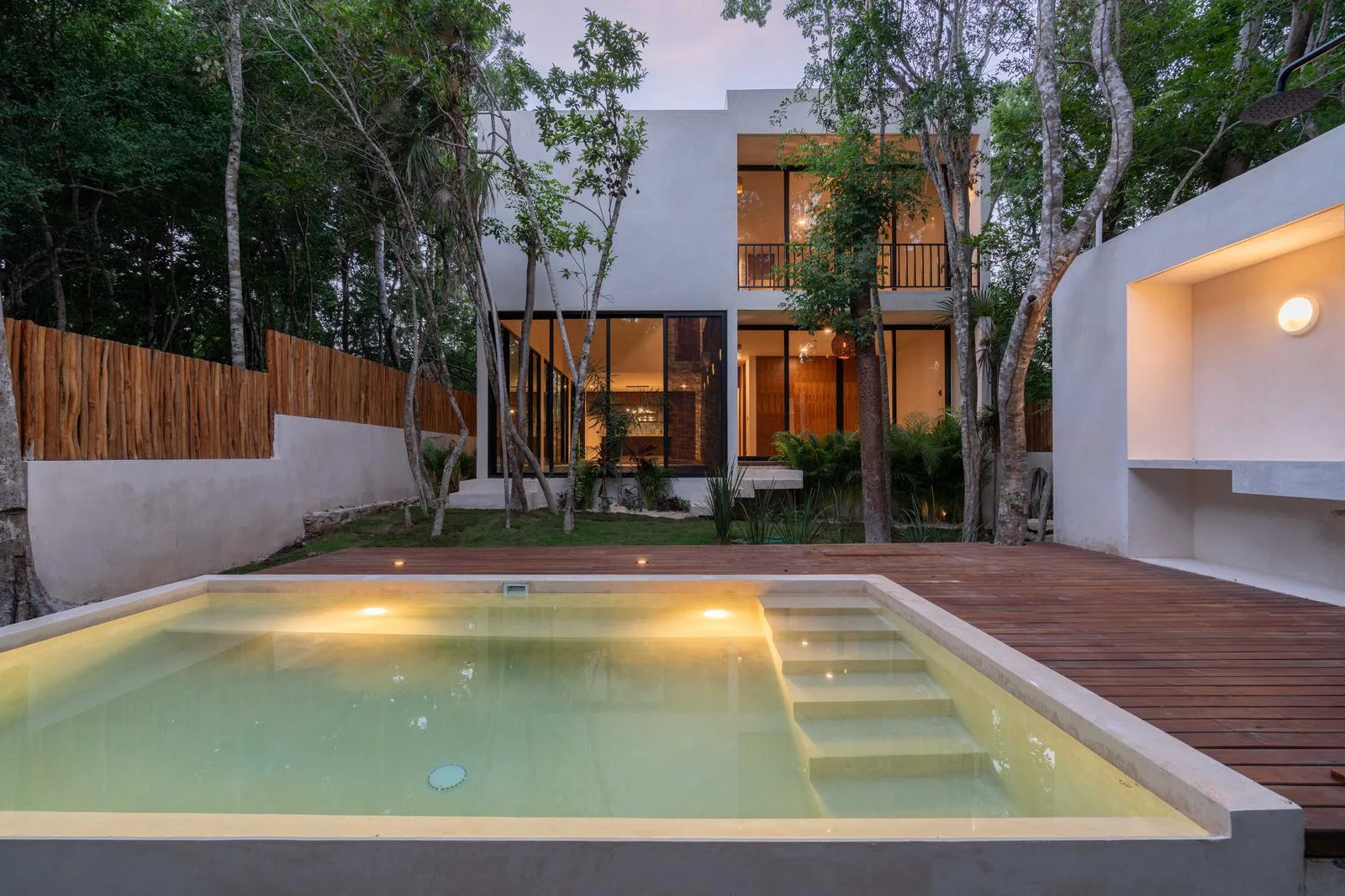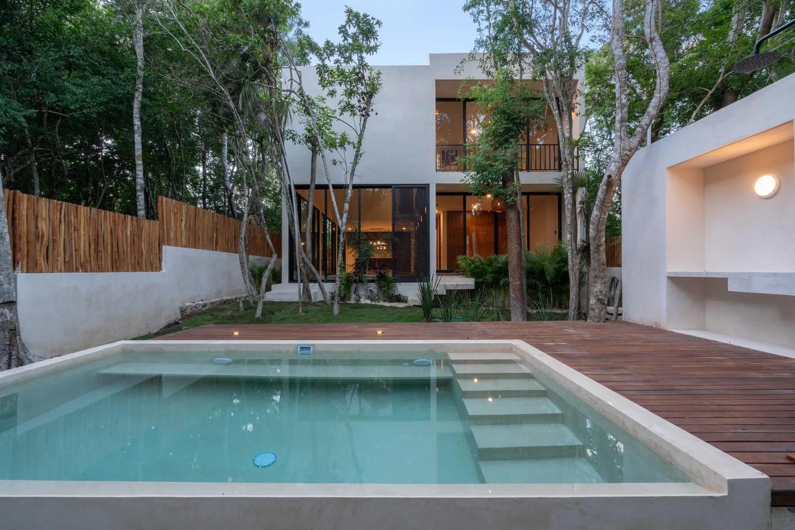 This new, well-equipped home is for sale, offering high-quality spatial design and abundant natural light. It is located within Villas Caribe in Bahía Príncipe, near the Kay Beach Club and the PGA Riviera Maya golf course.