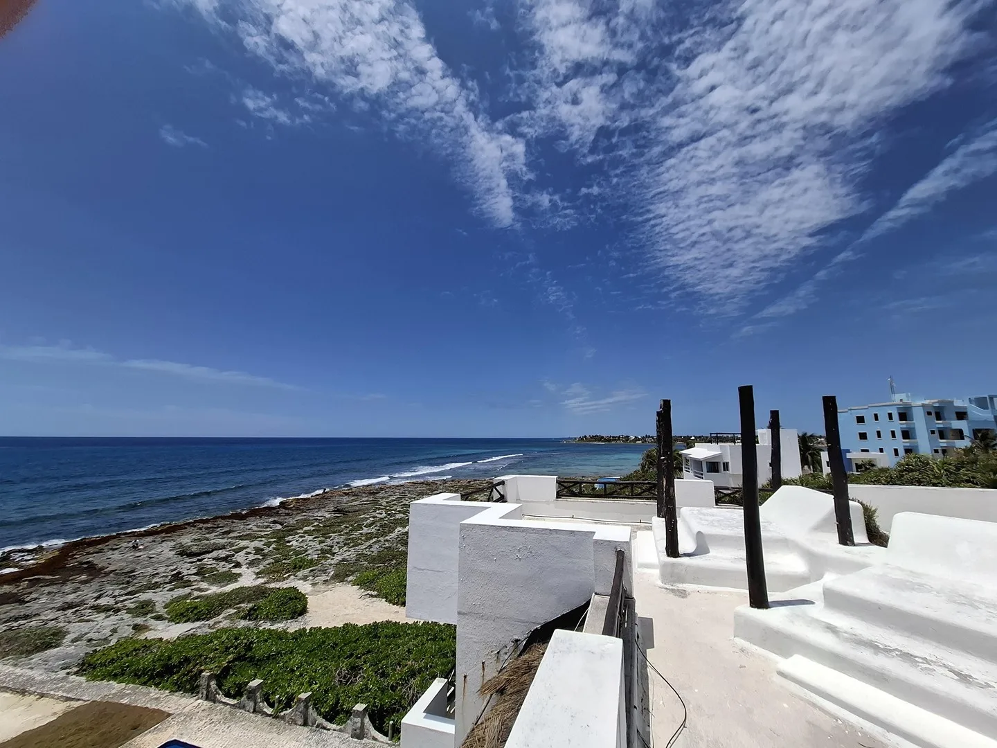 The villa sits on a 891. 73 m² lot with 315 m² of construction and 18 linear meters of beachfront. The residence features two levels, each with an independent two-bedroom apartment. Each apartment includes two full bathrooms, a living room, a dining area, and a kitchen, all with spectacular ocean views.