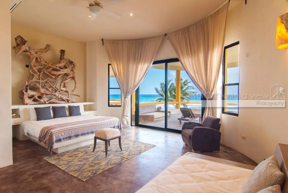 Oceanfront Villa with Nine Suites, Private Pool, and Rooftop Terrace South of Akumal