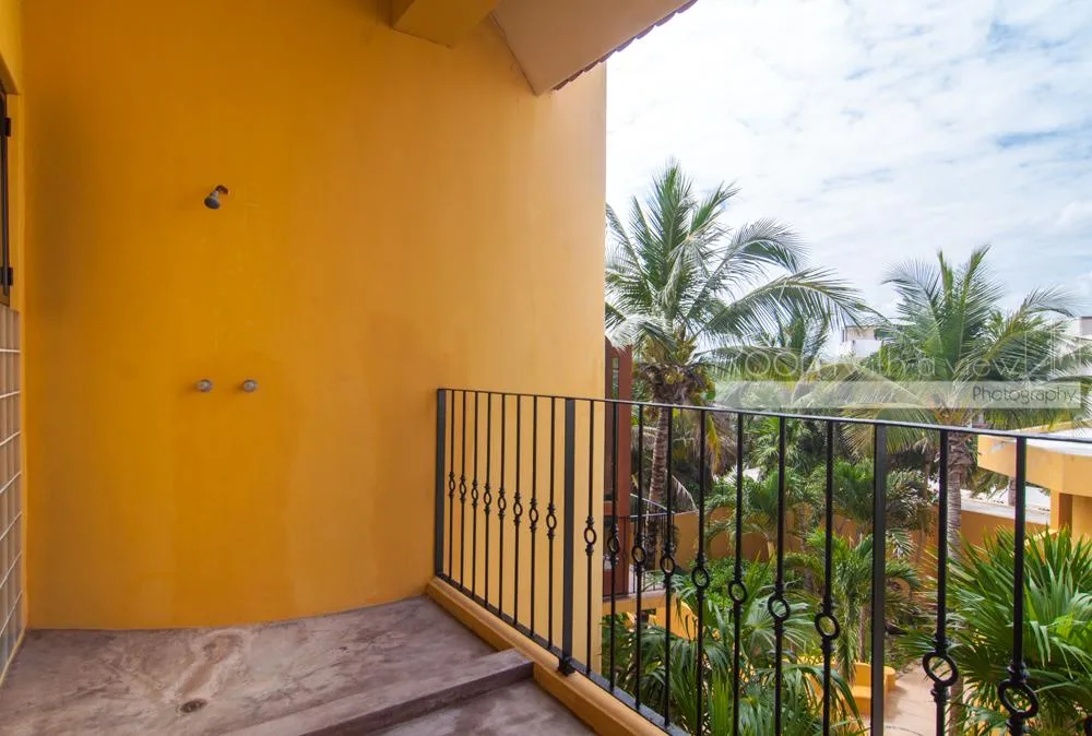 The villa is designed for indoor-outdoor living with expansive balconies and a spacious rooftop terrace offering sweeping Caribbean views. The property is fully furnished and includes an oceanfront swimming pool, an outdoor grill area, alfresco dining spaces, and palapas. The building offers concierge services and has a dedicated hospitality team.
