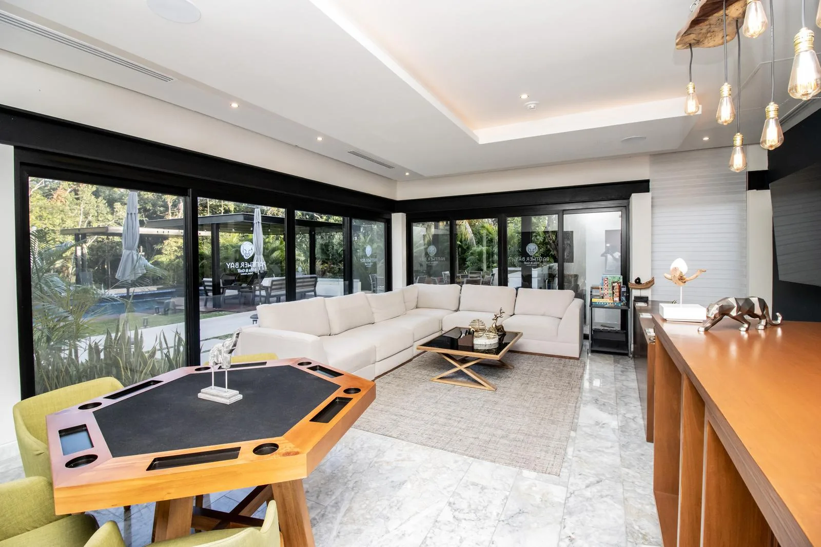 This villa comprises seven fully furnished and equipped apartments. A double-height entry hall leads to the apartments and to the outdoor terrace and pool. The property has capacity for up to 14 people.