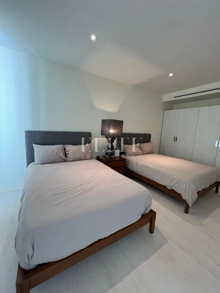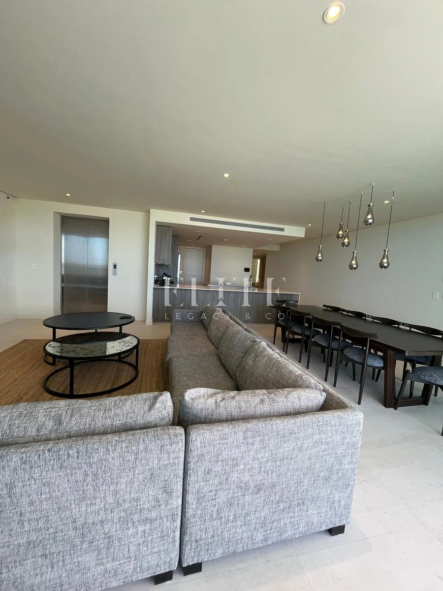 The apartment is furnished and in perfect condition, with all furniture in excellent state. It is located on the 18th floor and has a construction area of 260 square meters. The unit features direct beach access and incredible views of the sea and Puerto Cancún canals.