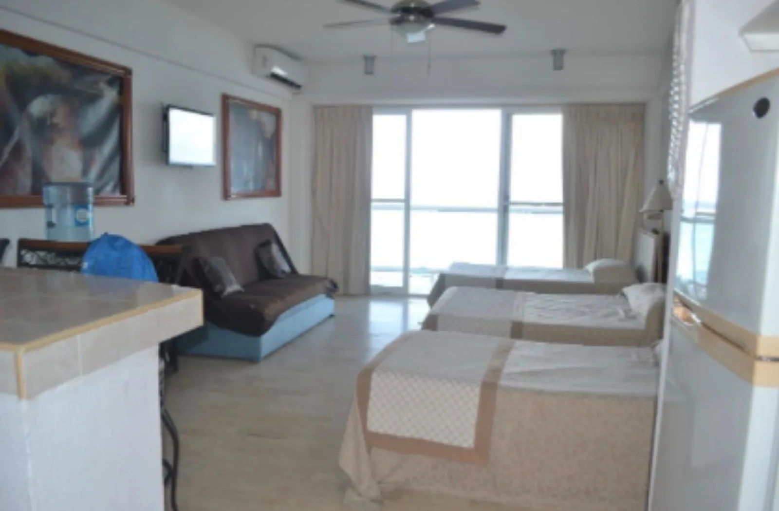 The complex features direct access to the beach and a swimming pool. Common areas offer WiFi, and the building includes a lobby and a snack bar. There is 24/7 security with controlled access, elevators, and wheelchair accessibility.