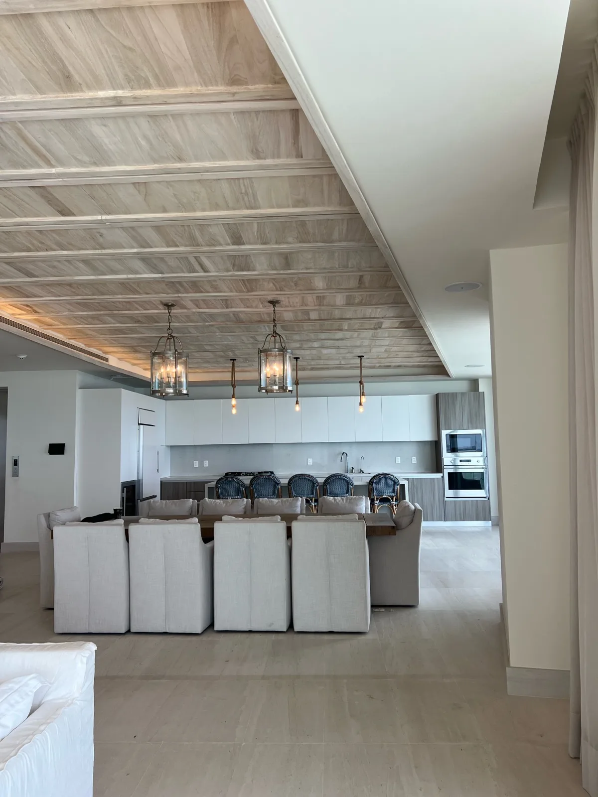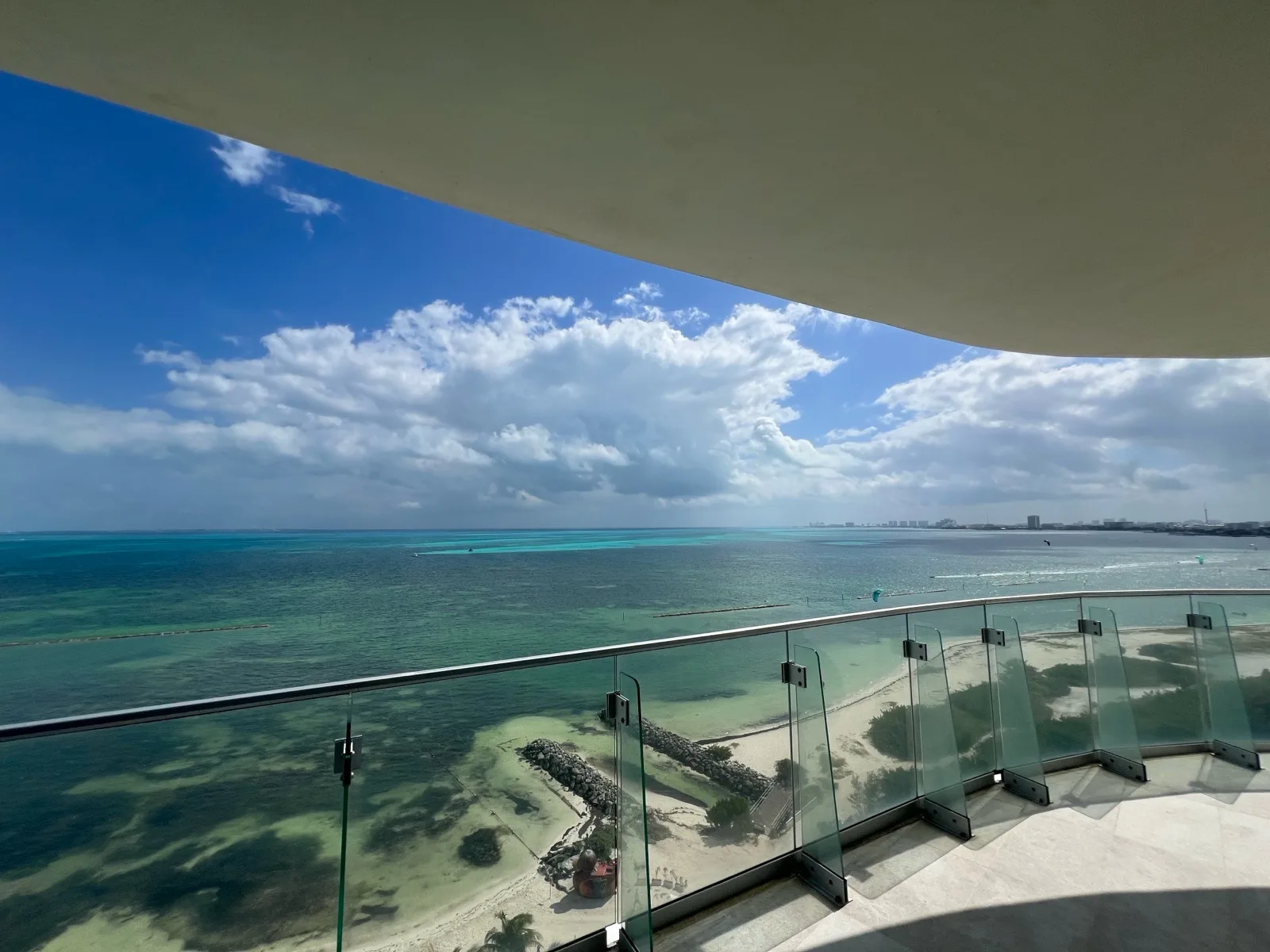 This spectacular high-floor residence offers 360-degree views of the Caribbean Sea. The property features direct beach access and luxury amenities within the development.