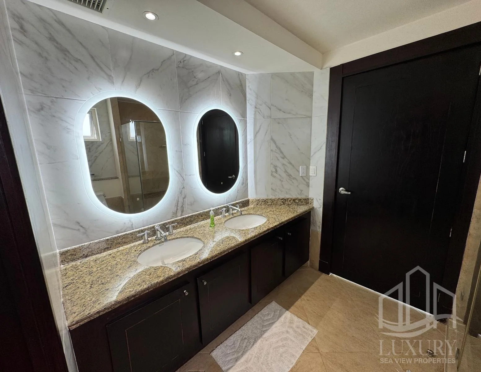 The apartment itself spans 180 square meters. It includes three bedrooms and three full bathrooms. The residence provides one parking space.