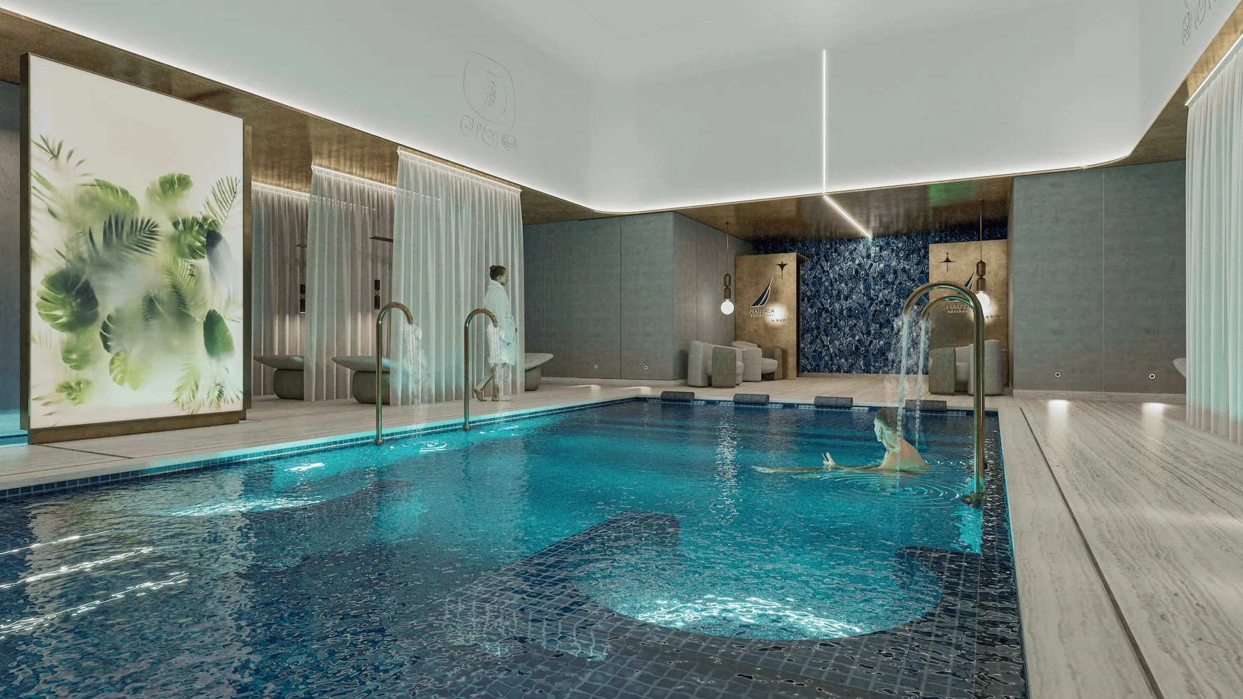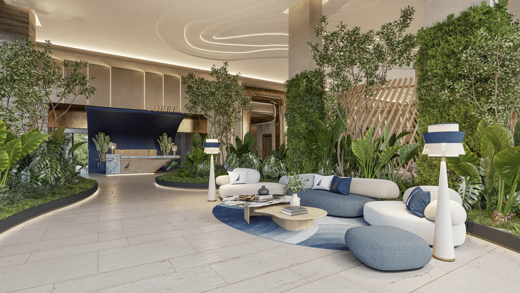 The development offers over fifty world-class amenities. These include a private beach club with included transportation, rooftop infinity pools, sky bars, and lounge areas. Additional facilities consist of a full-service spa, a gym, a yoga studio, and a Zen garden.
