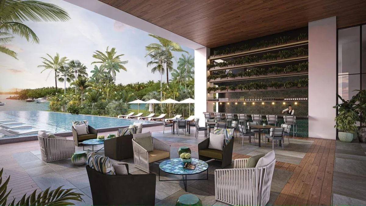 Residents have access to premier amenities including a beach club, pool bar and grill, private marina with dock, separate adult and family swimming pools, and exclusive access to a world-class spa. The property also features a golf course, yoga room, fully equipped gym, spa area, children's and teenagers' play areas, media room, event salon, luxury restaurants and shops. The building offers a motor lobby, 24-hour concierge, and 24/7 security.
