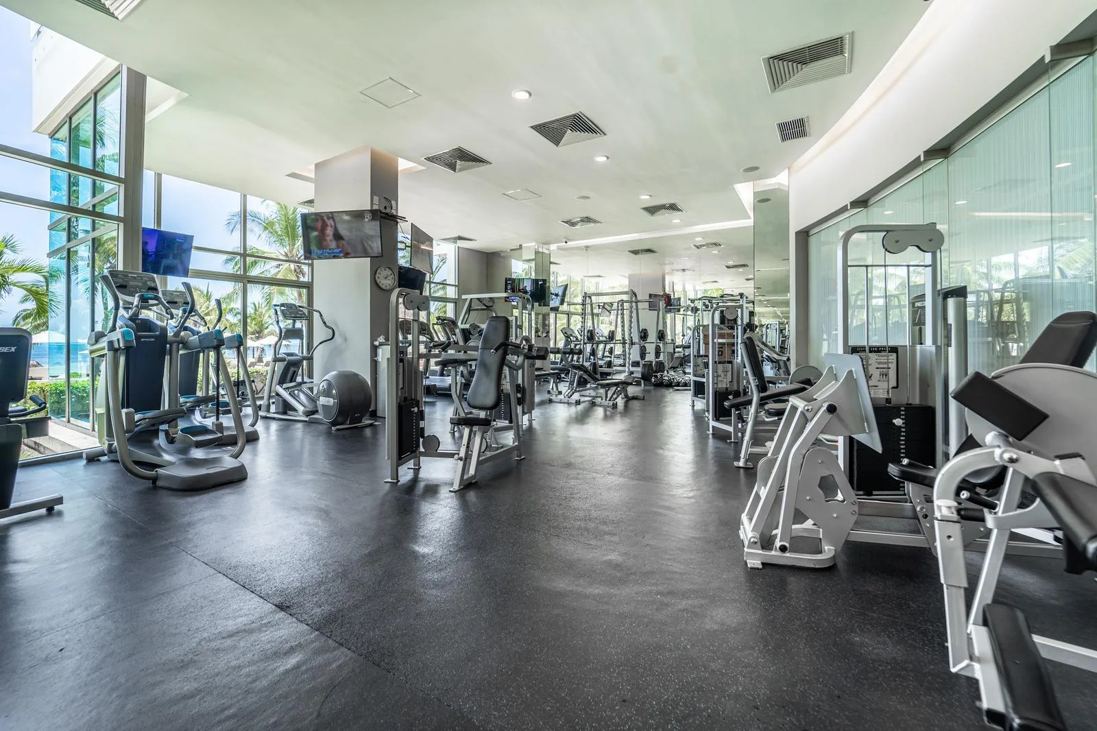 The residence offers extensive amenities, including swimming pools, a spa, a fitness center, tennis and paddle courts, and a beach snack-bar. The property is maintained with 24-hour security.