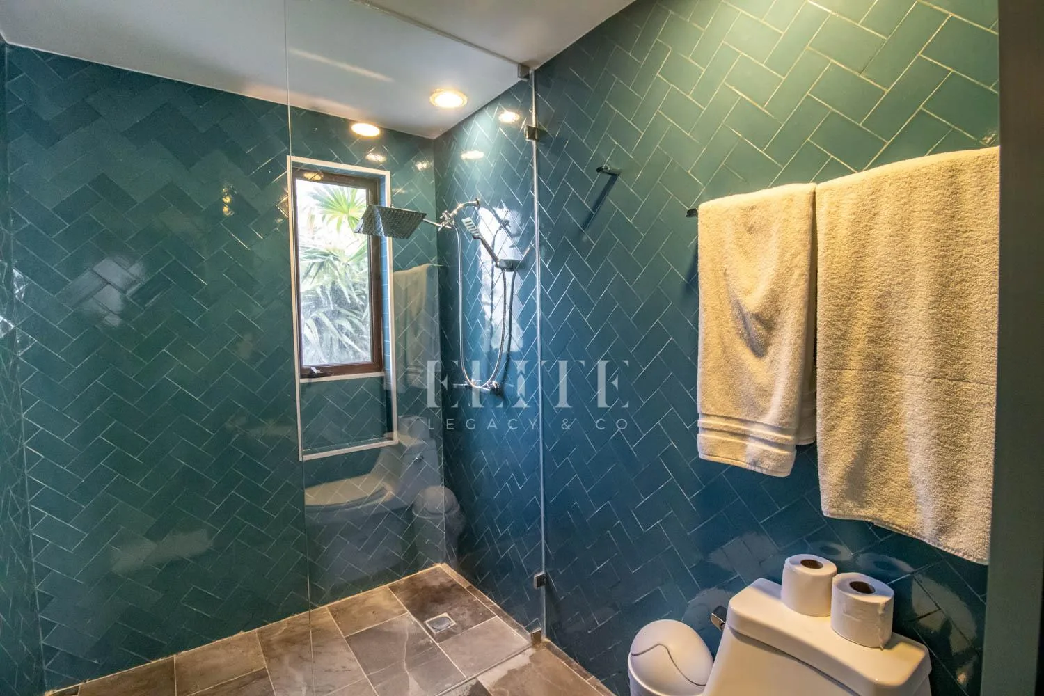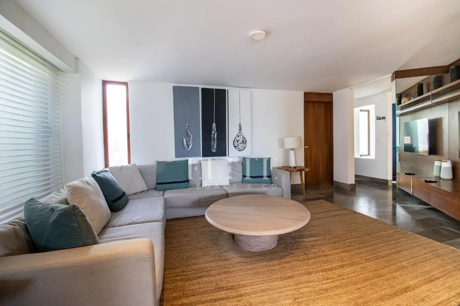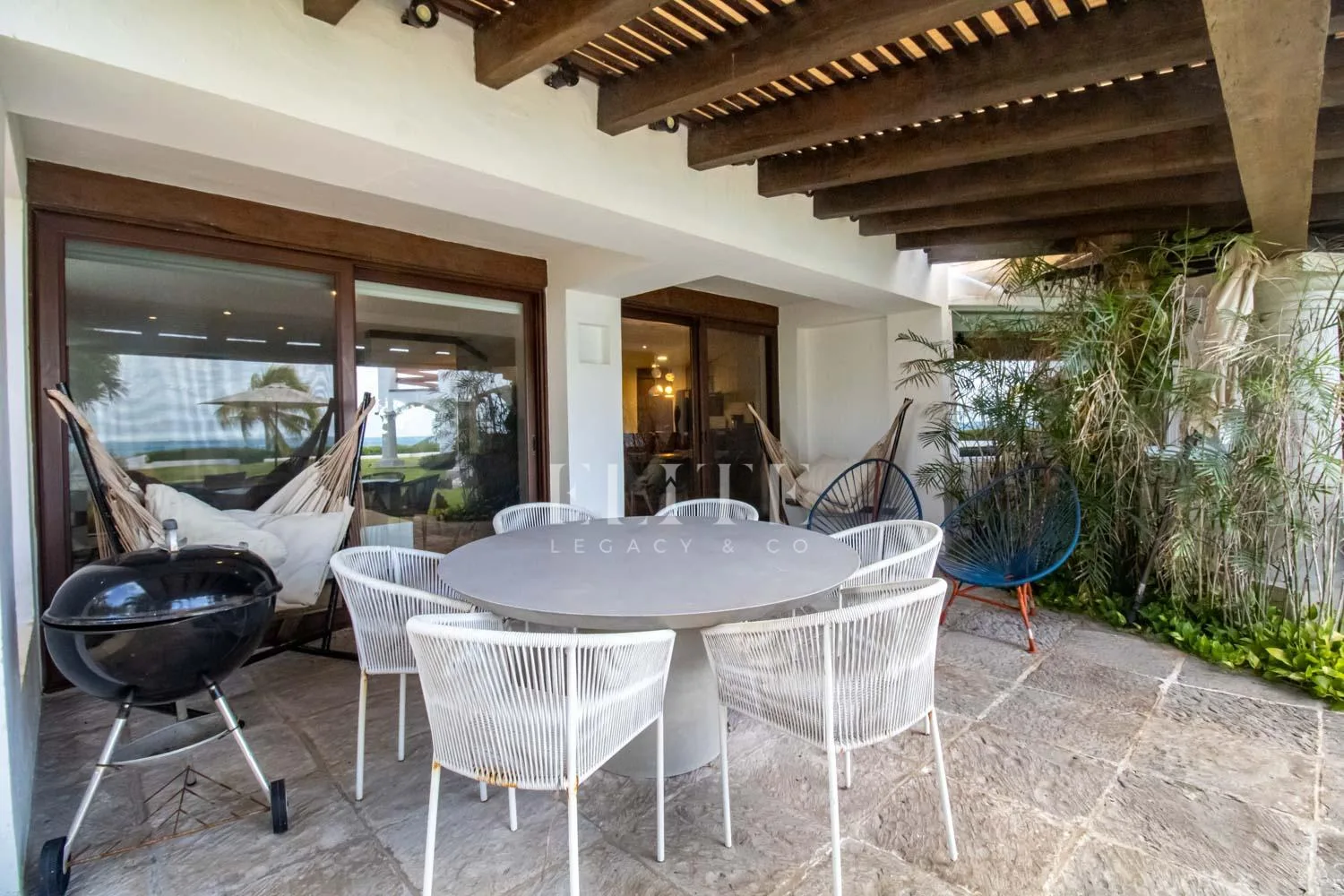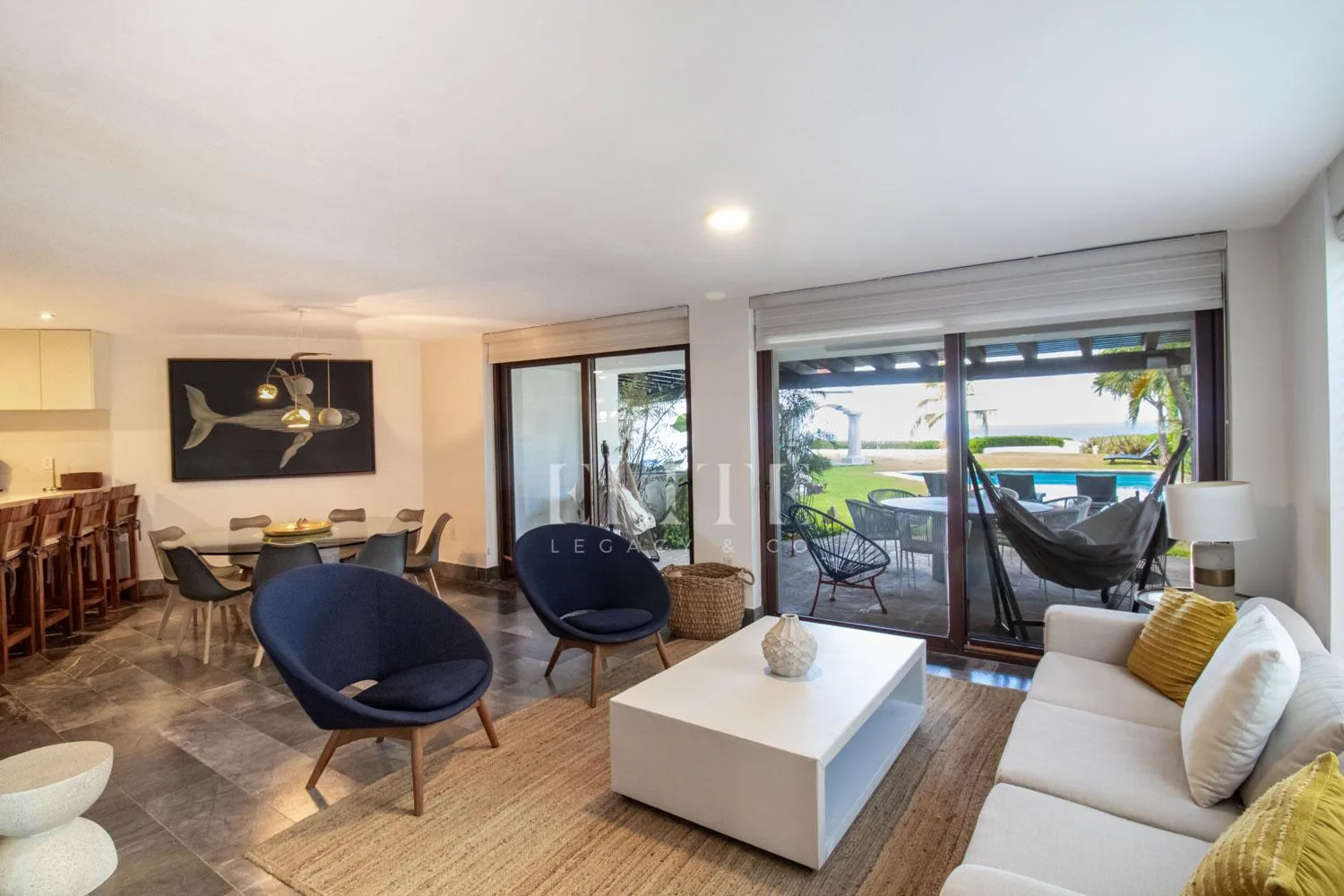 Externally, residents enjoy a swimming pool and a large garden in the common area, shared with only three other homes, with direct access to the beach. The property is located within a private condominium on a closed street, offering 24/7 security.