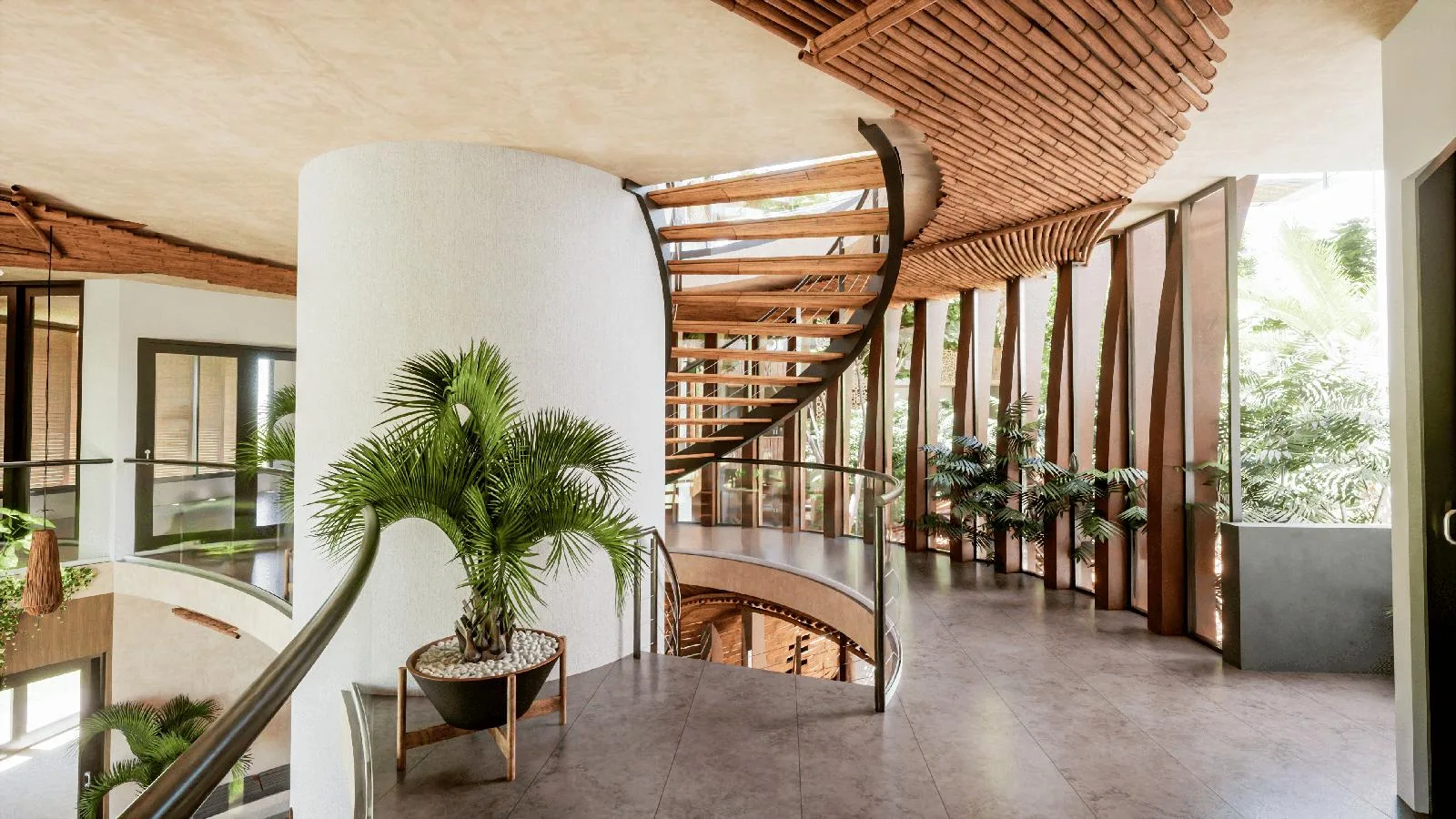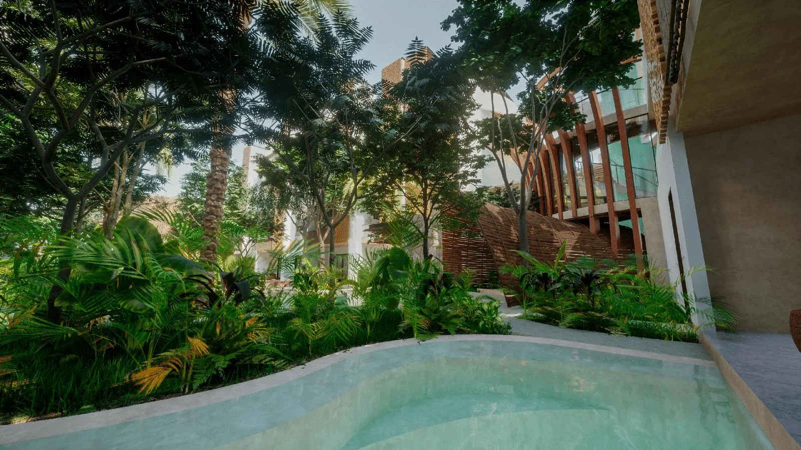 The residence is part of a building with extensive amenities. These include a lobby with reception, a coworking space, parking, and Wi-Fi in common areas. Building features consist of an audio and video cabin, a cinema room, a Temazcal, a spa, a yoga area, and a gym. There are also fire pits, a rooftop area, an elevator, and a commercial area.