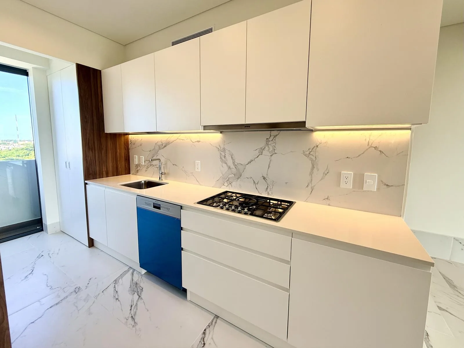 This new apartment is located on the 5th floor of the WOHA residential complex in Puerto Cancun. It features two bedrooms and two full bathrooms, with a direct elevator providing private access.