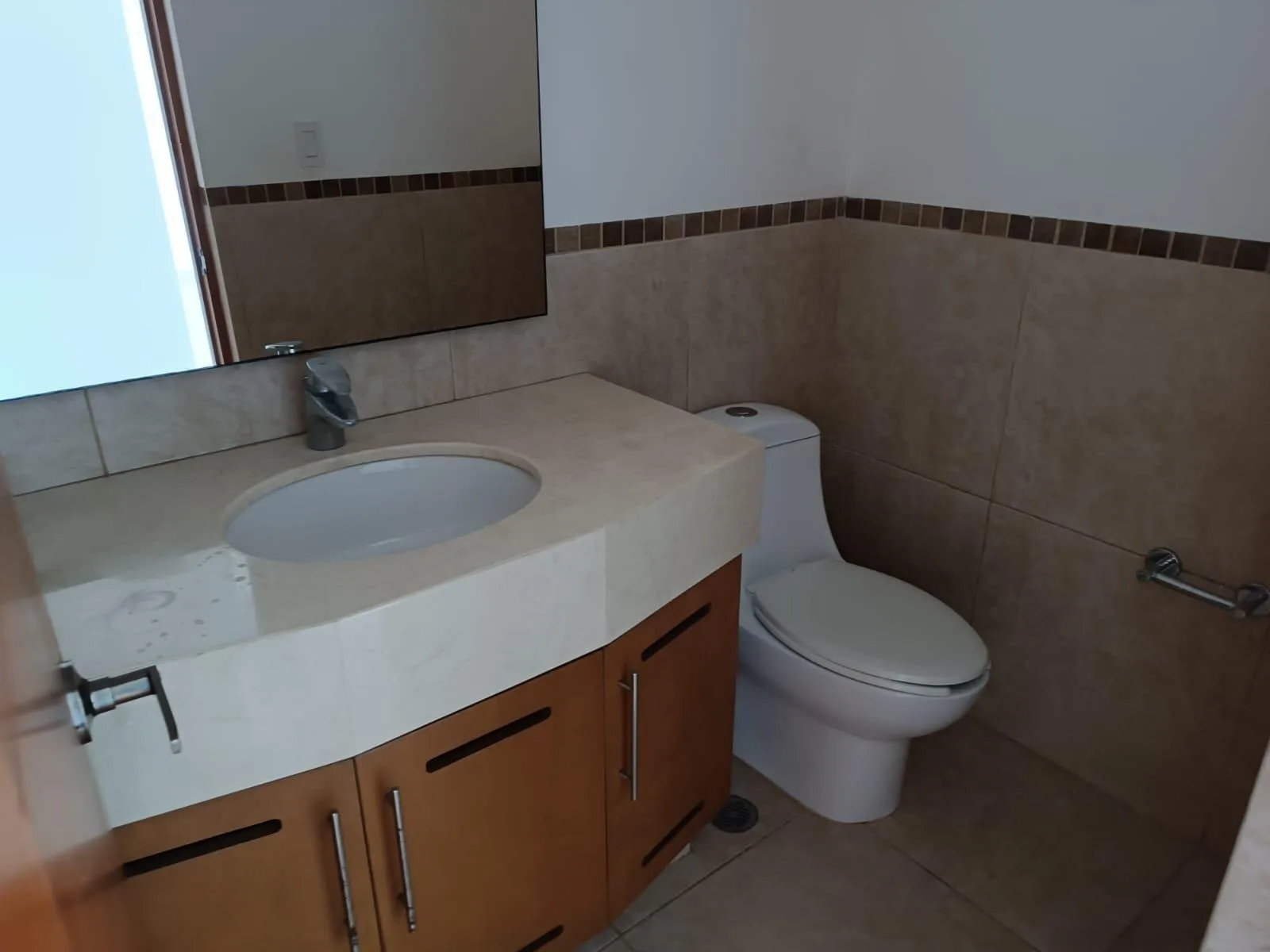 The Villalta residential complex features comprehensive amenities. These include two swimming pools surrounded by gardens, two palapas for events or gatherings, an equipped gymnasium, and a tennis court. The property provides 24-hour private security and controlled access.