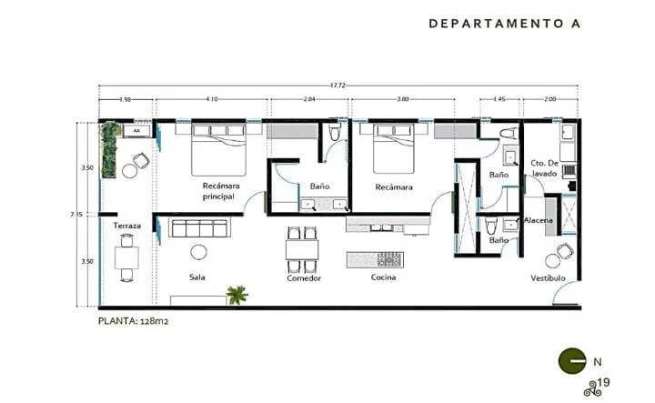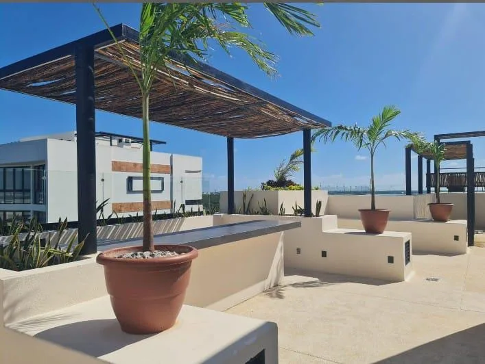 The property offers two bedrooms, each with a full bathroom, ensuring privacy and comfort. The primary bedroom is a true refuge, including a walk-in closet, direct access to a private terrace, and a planter box that adds freshness, natural light, and a harmonious connection with the surroundings.