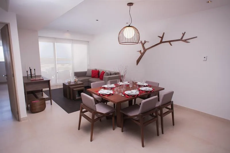 Two-bedroom apartments are available for sale in Torre Cartagena. These residences feature front-facing views of the lagoon and the sea, and are situated on Avenida Bonampak, providing convenient access to Plaza Malecón Américas.