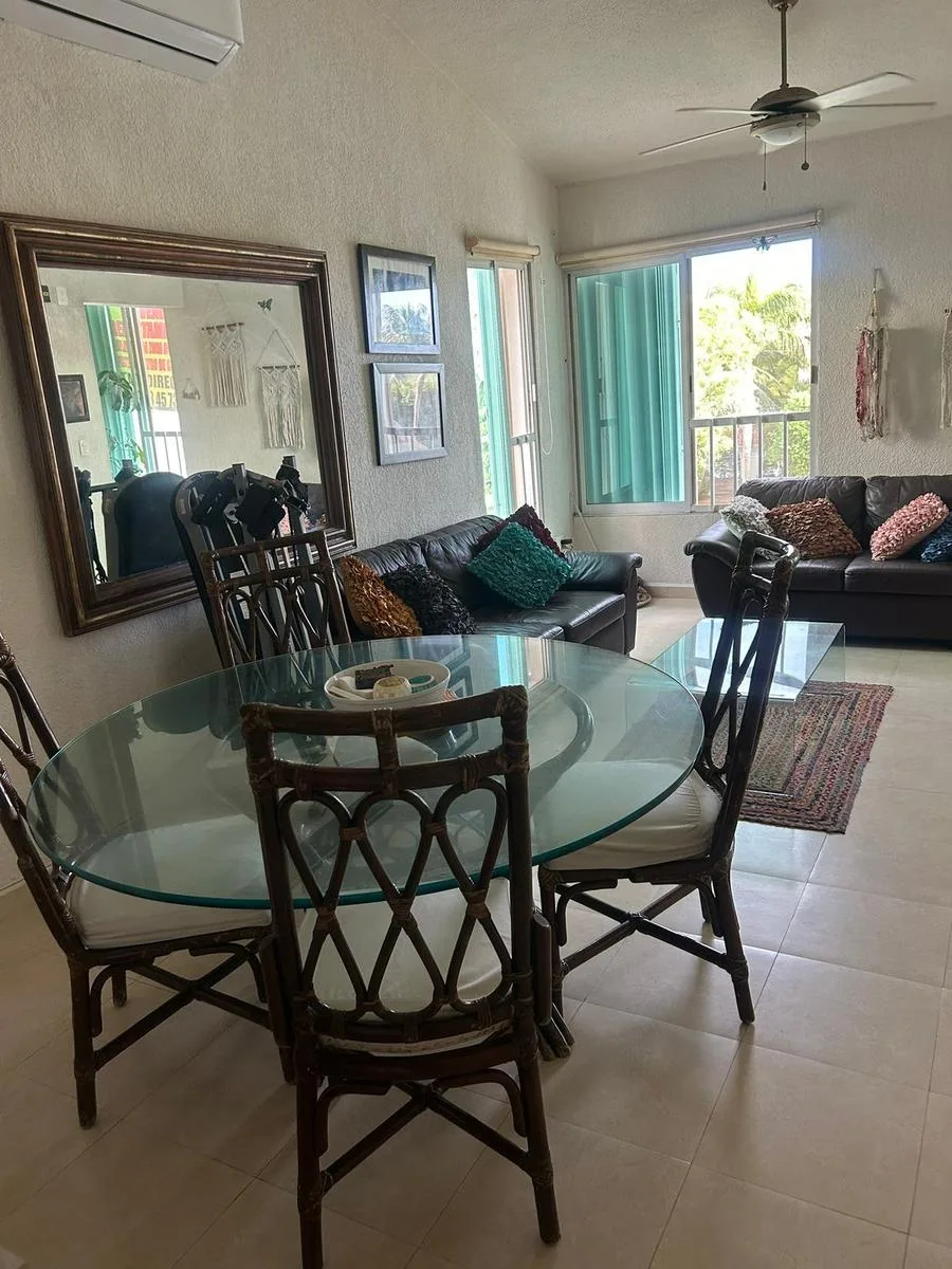 This apartment for sale is located on the second and top floor of the Playa Linda condominium. It offers excellent views of the swimming pools, common areas, the Nichupté Lagoon, and Isla Dorada.