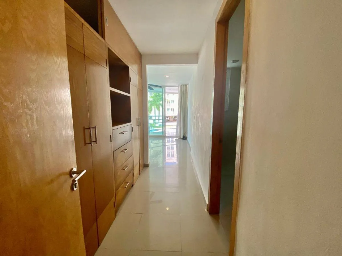Apartment for sale located in a quiet area of Cancún, close to commercial plazas such as Malecón, Marina Puerto Cancún and Bonampak pavilion. The area features various international restaurants, convenience stores, and walking paths. It is a few minutes from the Hotel Zone, Puerto Cancún, and the city center, with various services nearby.