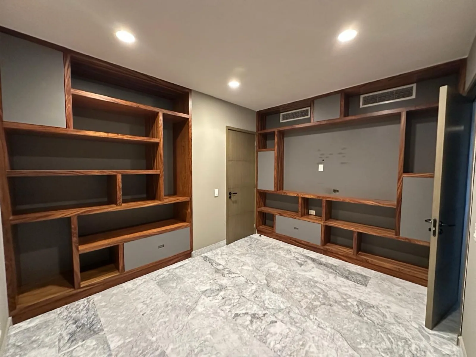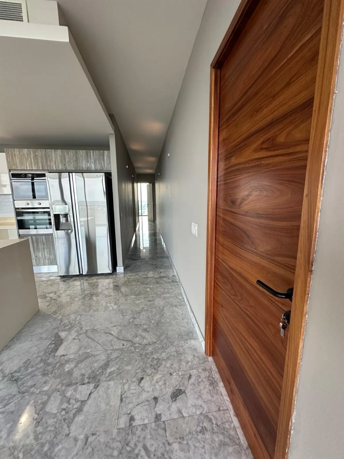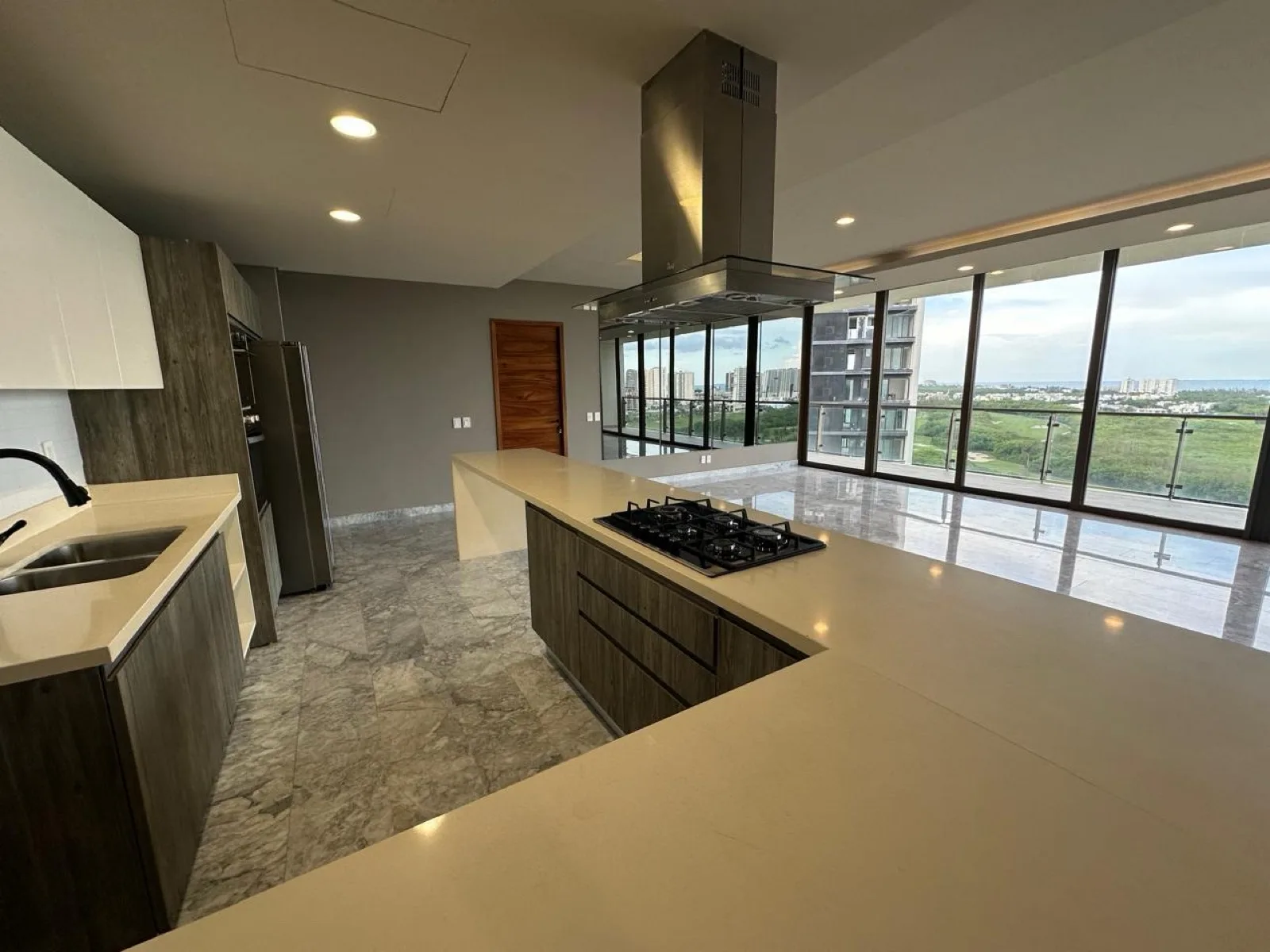 This apartment for sale is located in Puerto Cancún. It features three spacious bedrooms, plus an additional TV room that can function as a fourth bedroom. Each bedroom includes a full bathroom, and the primary suite has a walk-in closet.